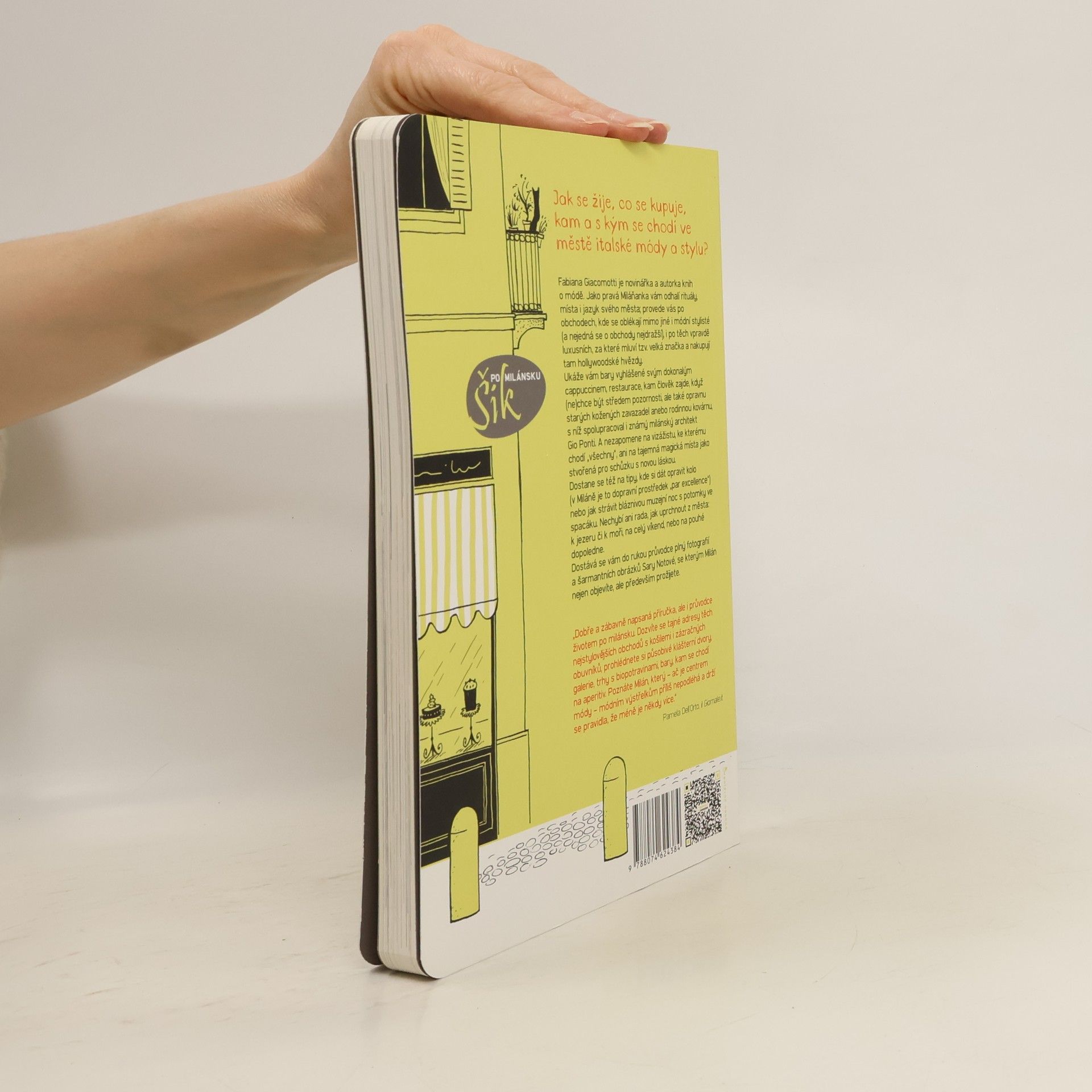Průvodce městem, které udává módu i životní styl. Fabiana Giacomottiová je novinářka, autorka knih o módě a zvycích. Jako pravá Miláňanka odhalí čtenáři rituály, místa i jazyk svého města; provede ho po obchodech, kde se oblékají mimo jiné i módní stylisté (a nejedná se o obchody nejdražší), i po těch vpravdě luxusních, za které mluví tzv. velká značka (tam nakupují hollywoodské hvězdy). Ukáže čtenáři bary vyhlášené dokonalým cappuccinem, restaurace, kam člověk zajde, když (ne)chce být středem pozornosti, ale také opravnu starých kožených zavazadel anebo rodinnou kovárnu, s níž spolupracoval i známý milánský architekt Gio Ponti. A nezapomene na vizážistu, ke kterému chodí „všechny“, ani na tajemná magická místa jako stvořená pro schůzku s novou láskou. Dostane se též na tipy, kde si dát opravit kolo (v Miláně je to dopravní prostředek „par excellence“), nebo jak strávit bláznivou muzejní noc s potomky ve spacáku. Nechybí ani rada, jak uprchnout z města: k jezeru či k moři, na celý víkend, nebo na pouhé dopoledne… Věděli jste, že v budově, kde se dnes setkávají přední módní návrháři, žila jeptiška z Monzy, jedna z postav Manzoniho Snoubenců? A že nejsvůdnější žena devatenáctého století bydlela přímo naproti sídlu Giorgia Armaniho? Pokud ne, dostává se vám do rukou průvodce plný fotografií a šarmantních obrázků Sary Notové, se kterým Milán nejen objevíte, ale především prožijete.