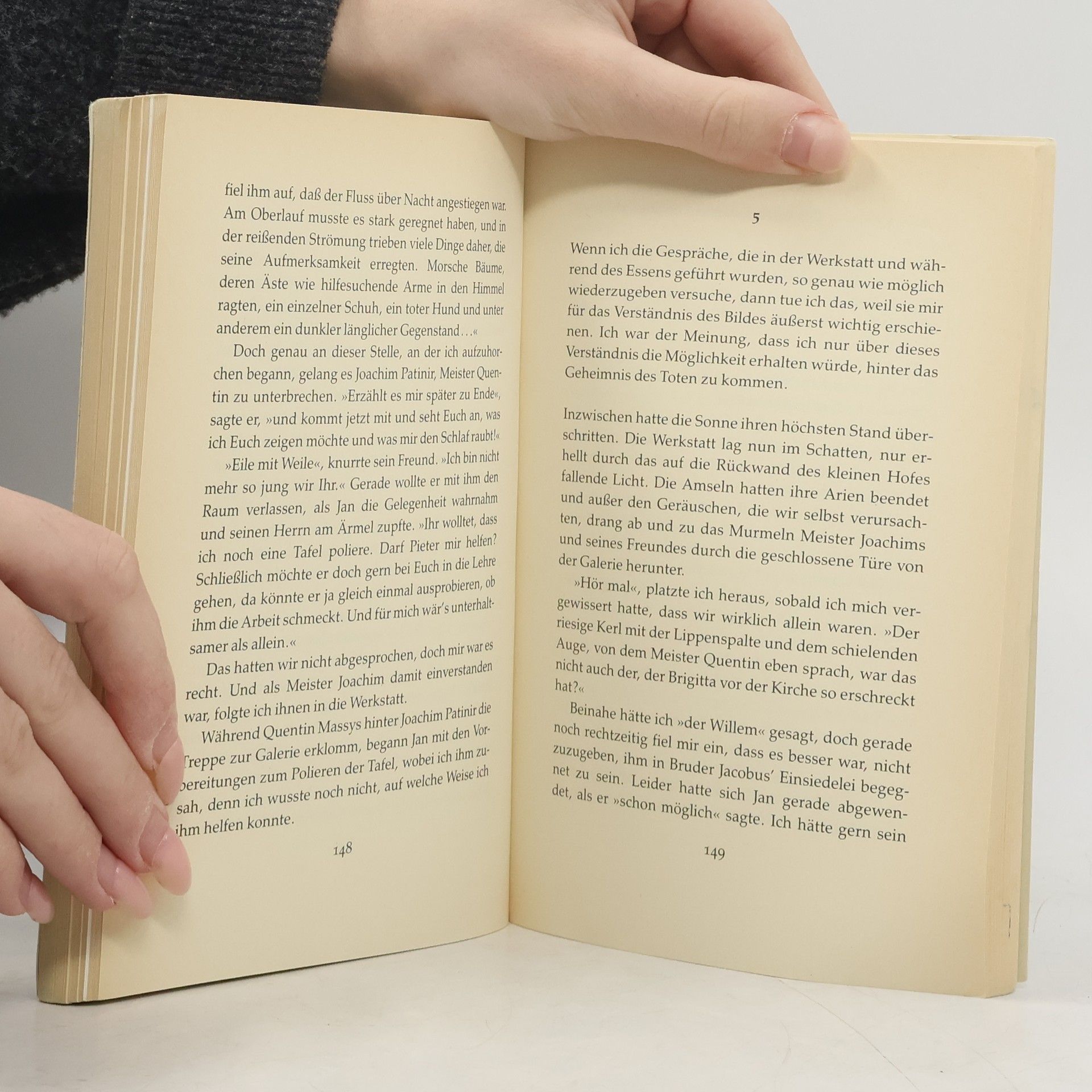 Peter ist fasziniert. Seit er das Gemälde "Der heilige Christophorus" des Niederländers Joachim Patinir entdeckt hat, lässt ihn ein Detail nicht mehr zur Ruhe kommen: Warum liegt da ein Toter am Flussufer? Er verschlingt jedes Buch, das er über den Maler und seine Zeit finden kann, besorgt sich Musik des 16. Jahrhunderts, vergräbt sich in seinem Zimmer - und eines Tages steht er Meister Joachim in seiner Werkstatt gegenüber.