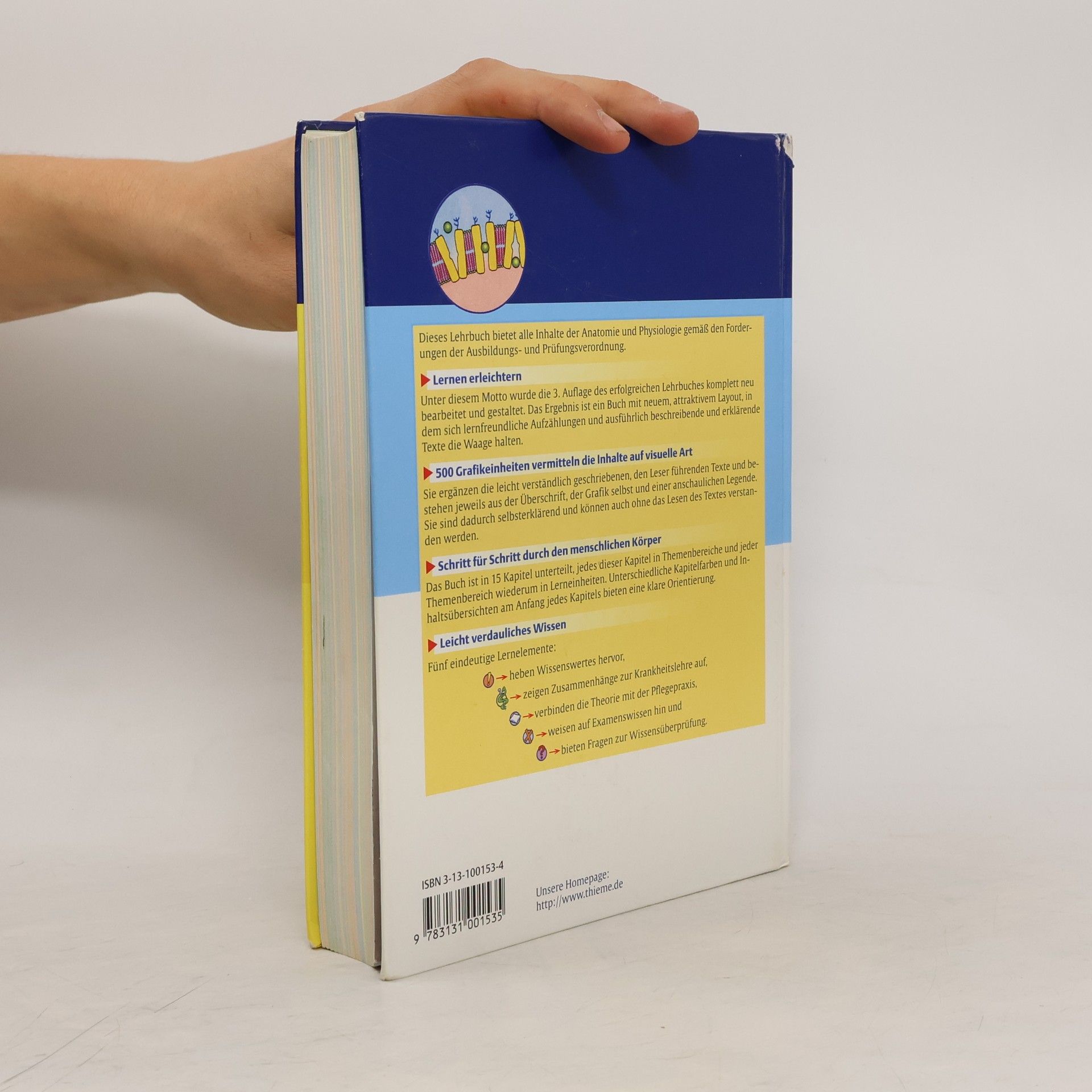 Eine Reise ins Innere des Körpers Schritt für Schritt durch den Menschen anhand von 15 Kapiteln, die in Themenbereiche unterteilt sind Wissen leicht verdaulich Schwierige Sachverhalte verständlich dargestellt Gut strukturierte Texte bringen die Fakten auf den Punkt Leicht verdauliche, kleine Lerneinheiten Anatomie nach dem neuen Pflegegesetz Inhalte und Umfang an das neue Pflegegesetz angepasst Starker Fallbezug fördert den Theorie-Praxis-Transfer Übersichtlich und ansprechend Im farbenfrohen Layout Perfekte Kombination von Überschrift, Grafik und anschaulicher Beschreibung Klare Orientierung durch unterschiedliche Kapitelfarben und Übersichten am Kapitelanfang