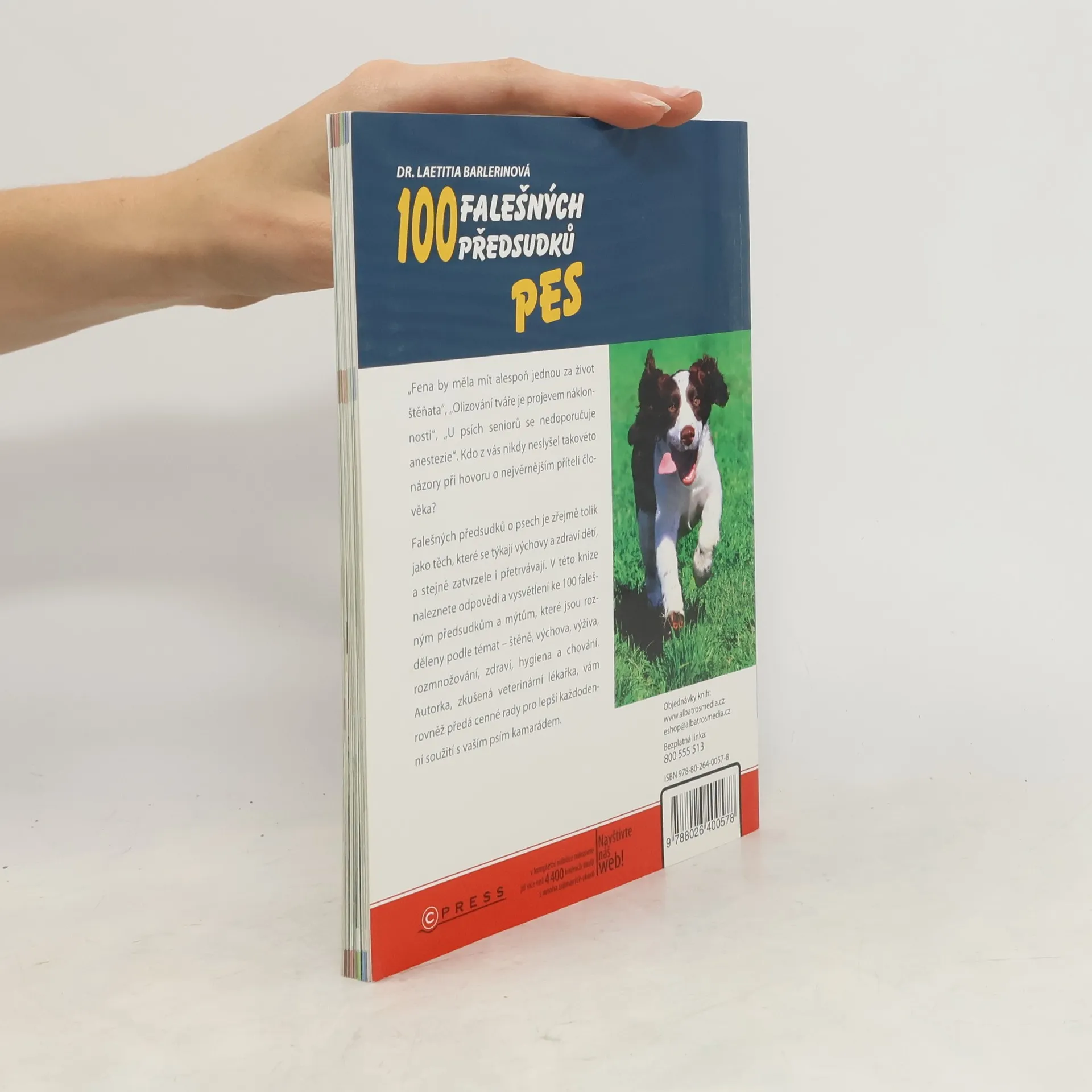 „Fena by měla mít alespoň jednou za život štěňata“, „Olizování tváře je projevem náklonnosti“, „U psích seniorů se nedoporučuje anestezie“. Kdo z vás nikdy neslyšel takovéto názory při hovoru o nejvěrnějším příteli člověka? Falešných předsudků o psech je zřejmě tolik jako těch, které se týkají výchovy a zdraví dětí,a stejně zatvrzele i přetrvávají. V této knize naleznete odpovědi a vysvětlení ke 100 falešným předsudkům a mýtům, které jsou rozděleny podle témat – štěně, výchova, výživa, rozmnožování, zdraví, hygiena a chování. Autorka, zkušená veterinární lékařka, vám rovněž předá cenné rady pro lepší každodenní soužití s vaším psím kamarádem.
