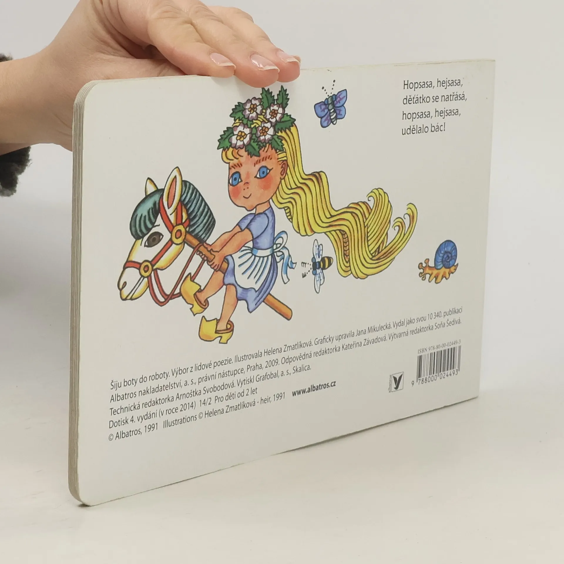 Leporelo oblíbených lidových říkadel pro nejmenší s působivými obrázky Heleny Zmatlíkové jistě potěší malé i velké. Určitě si rádi připomenete a své děti naučíte Kolo, kolo mlýnský nebo Šiju boty do roboty. Výrazná rytmická říkadla jsou snadno zapamatovatelná a dítě si bude při jejich opakování rozvíjet paměť i slovní zásobu.