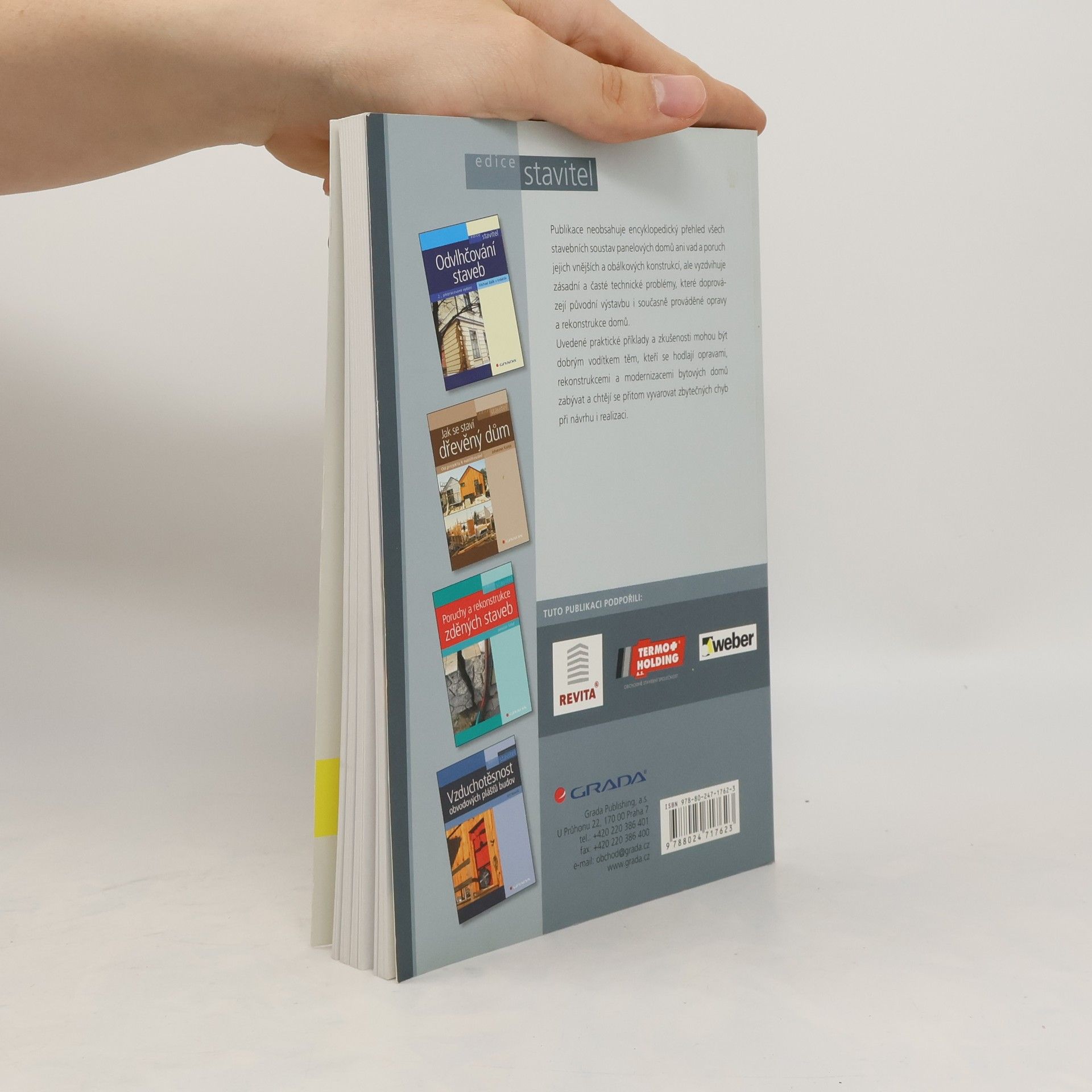 Kniha je určena pro projektanty, investory a majitele bytových domů, postavených některou z typových stavebních soustav a prefabrikovaných železobetonových technologií. Publikace je založena na ukázkách a praktických příkladech. Na četné obrazové dokumentaci je zaznamenám současný stav bytových domů.