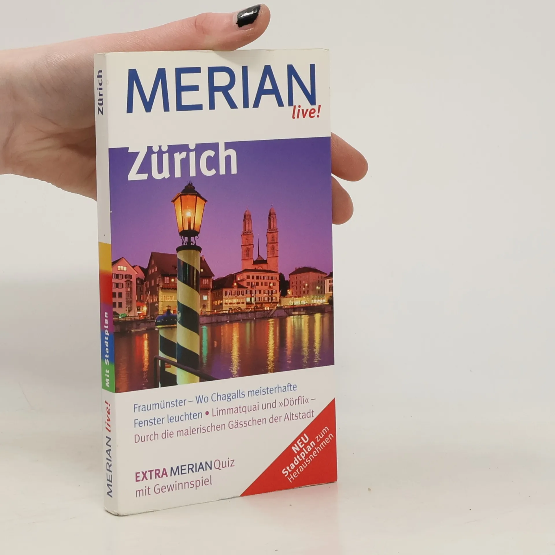 Mehrfach ausgezeichnet als bester Kompakt-Reiseführer: 1. Platz ITB BuchAward! + Jetzt neu mit herausnehmbarem Stadtplan zusätzlich zum Kartenatlas. + Extra: MERIAN-Quiz mit Gewinnspiel! +++ Eine Auswahl aus dem Inhalt: Sehenswertes: Bahnhofstraße + Belvoirpark + Fraumünster + Großmünster + Technorama +++ Museen und Galerien: Kunsthaus + Völkerkundemuseum u. v. m. +++ Die 4 schönsten Spaziergänge: Altstadtrundgang mit Bahnhofstraße + Im Ober- und Niederdorf + Kunst auf Zürichs Straßen und Plätzen + Spaziergang durch das „andere“ Zürich ++ Die 4 lohnendsten Ausflüge in die Umgebung: Von Küsnacht zum Pfannenstiel + Zürich und Adlisberg + Ausflug zum Uetliberg + Nach Winterthur - in die Stadt der Museen +++ Ca. 60 Farbfotos, herausnehmbarer Stadtplan plus 10 Seiten Kartenatlas, 1 Übersichtskarte, 1 Stadtplan, 1 Verkehrslinienplan, Sprachführer und Essdolmetscher, MERIAN-TopTen und MERIAN-Tipps +++ MERIAN-Spezial-Thema: Aufstand im Geiste - Die Geburtsstunde des Dadaismus