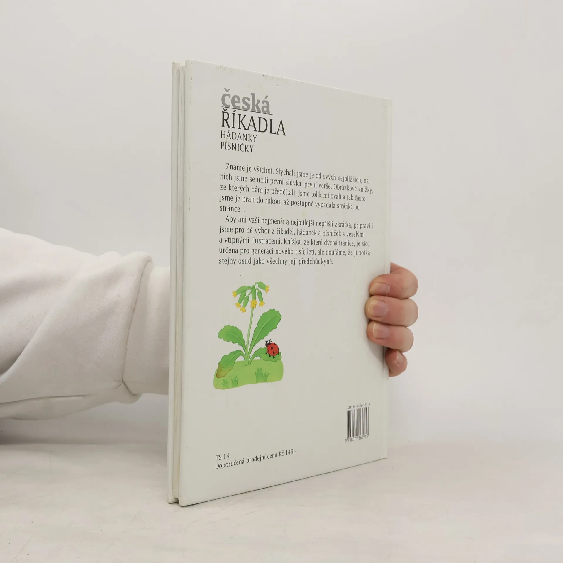 Známe je všichni. Slýchali jsme je od svých nejbližších, na nich jsme se učili první slůvka, první verše. Obrázkové knížky, ze kterých nám je předčítali, jsme tolik milovali a tak často jsme je brali do rukou, až postupně vypadala stránka po stránce... Aby ani vaši nejmenší a nejmilejší nepřišli zkrátka, připravili jsme pro ně výbor z říkadel, hádanek a písniček s veselými a vtipnými ilustracemi. Knížka, ze které dýchá tradice, je sice určena pro generaci nového tisíciletí, ale doufáme, že ji potká stejný osud jako její předchůdkyně.
