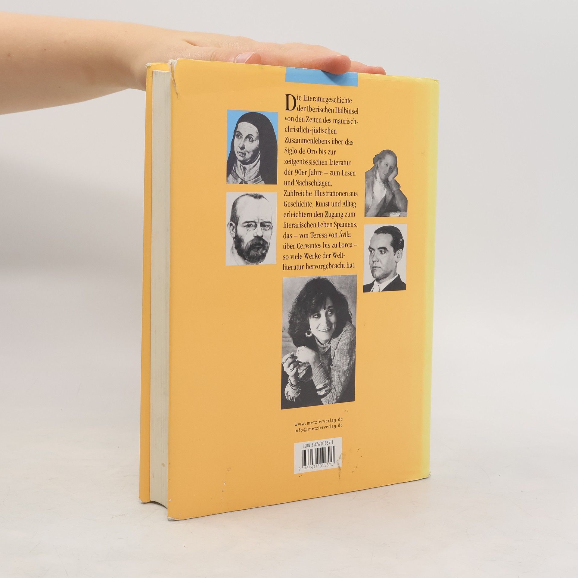 Von Teresa de Ávila über Cervantes bis Cela. Das breite Panorama der spanischen Literatur von dem maurisch-christlich-jüdischen Zusammenleben über das Siglo de Oro bis zur zeitgenössischen Literatur entwirft dieser Band. Den Schwerpunkt bildet das 19. und 20. Jahrhundert mit seinen literarischen Erscheinungen wie: die asturianische Aufklärung, der Costumbrismus, das „Género chico“, die „Generationen“ von 1898 und 1927 und die Literatur der Francozeit. Der Autor zeigt die typischen Erscheinungen und Probleme wie die spanischen Mystik, den Schelmenroman, den Widerstreit zwischen Inquisition und Aufklärung und die kulturellen Folgen des Bürgerkriegs im 20. Jahrhundert. Zahlreiche Illustrationen aus Geschichte, Kunst und Alltag zeigen die große Vielfalt des literarischen Leben Spaniens.