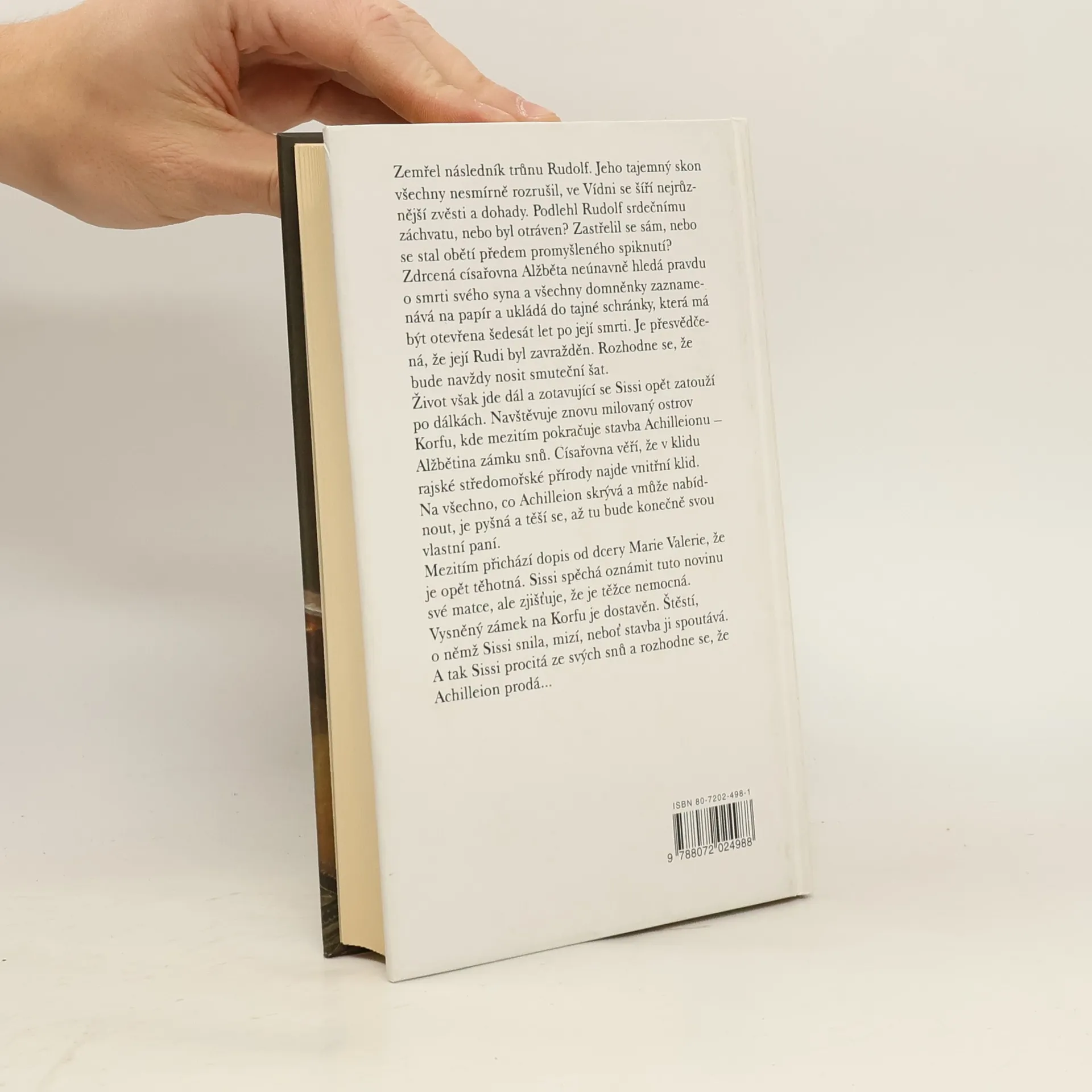Pátý díl rozsáhlého životopisného románu o životě císařovny Alžběty se odehrává bezprostředně po smrti korunního prince Rudolfa. Zdrcená císařovna hledá pravdu o synově smrti a nabývá přesvědčení, že princ Rudolf byl zavražděn. Čas trochu otupil bolest ze ztráty a císařovna opět cestuje na Korfu, kde mezitím pokračuje stavba Achilleionu, jejího vysněného zámku. Krátce před dostavbou ji potká nová životní rána v podobě těžké nemoci její matky a císařovna, která pozvolna opouští své antické sny, se rozhoduje Achilleion prodat.