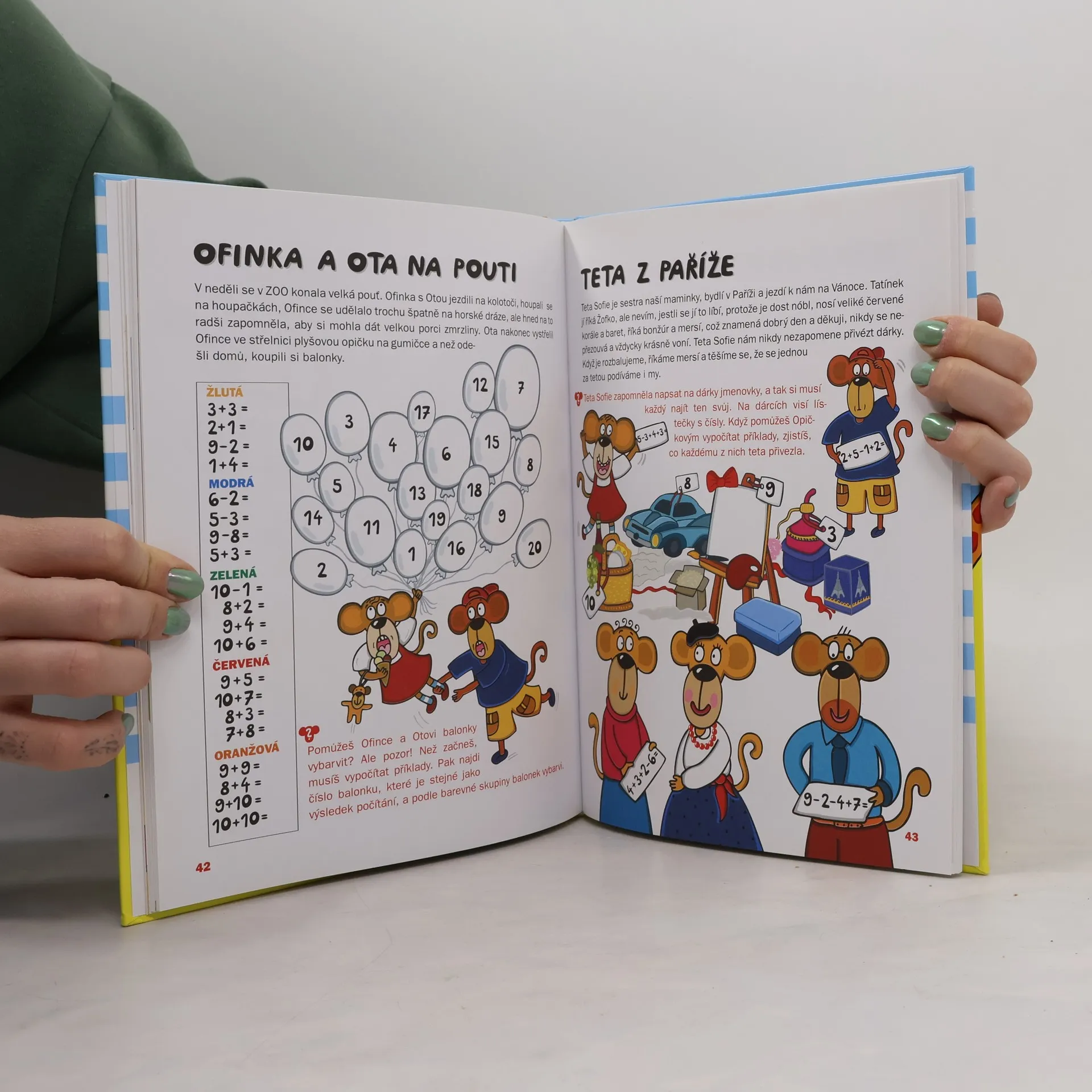 Ofinka Opičková, maminka Ofélie, tatínek Olda, brácha Ota, Eda, Žaneta, Žužu a další kamarádi ze ZOO naučí děti zábavnou a nenásilnou formou počítat od 1 do 10, sčítat, odečítat, seznámí je se sudými a lichými čísly i znaménky větší, menší, rovná se. Za pomoci veselých úkolů, her, doplňování, kreslení a vybarvování si pak děti procvičí počítání od 1 do 100. Smyslem této knihy je rozvíjet nejen logické myšlení dětí, ale také podněcovat jejich tvořivost a fantazii.