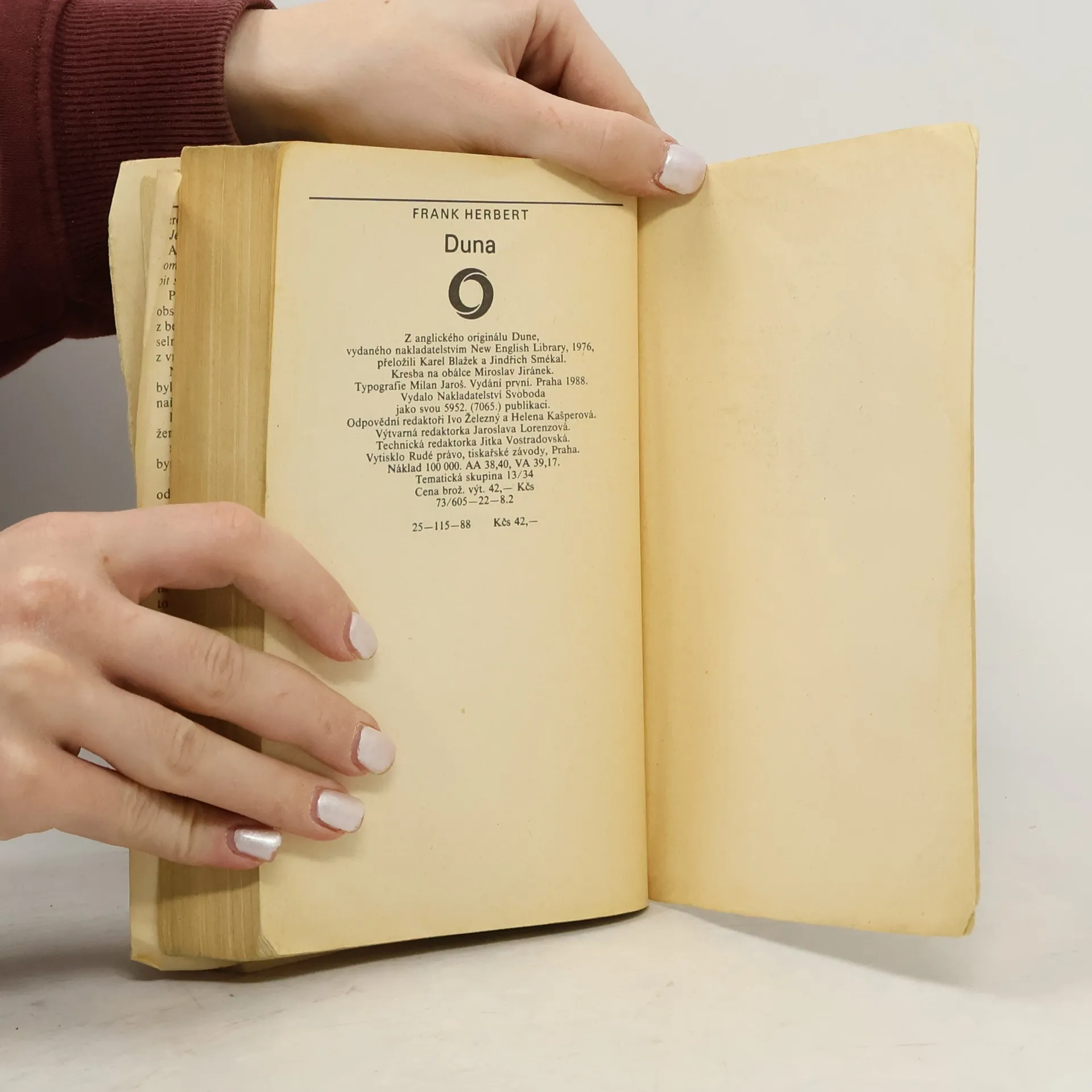 První kniha z cyklu kronik o planetě Duna, fenomenálního díla světové sci-fi. První díl šestidílného sci-fi románu vypráví o pouštní planetě Arrakis s naprostým nedostatkem vody a jediným známým nalezištěm zvláštního koření, které má moc prodloužit lidský život a které poskytuje člověku mimořádné psychické schopnosti. Román vyšel poprvé v roce 1966, získal několik literárních cen (např. Nebula) a měl u čtenářů omračující ohlas. Podle románu vznikl o dvě desetiletí později i film, který natočil známý režisér David Lynch. Frank Herbert svůj úspěch rozvinul v pěti pokračováních zachycujících následné osudy planety Arrakis a boje o její ovládnutí. Šestisvazková sága Duna amerického spisovatele Franka Herberta patří do zlatého fondu světového science fiction.