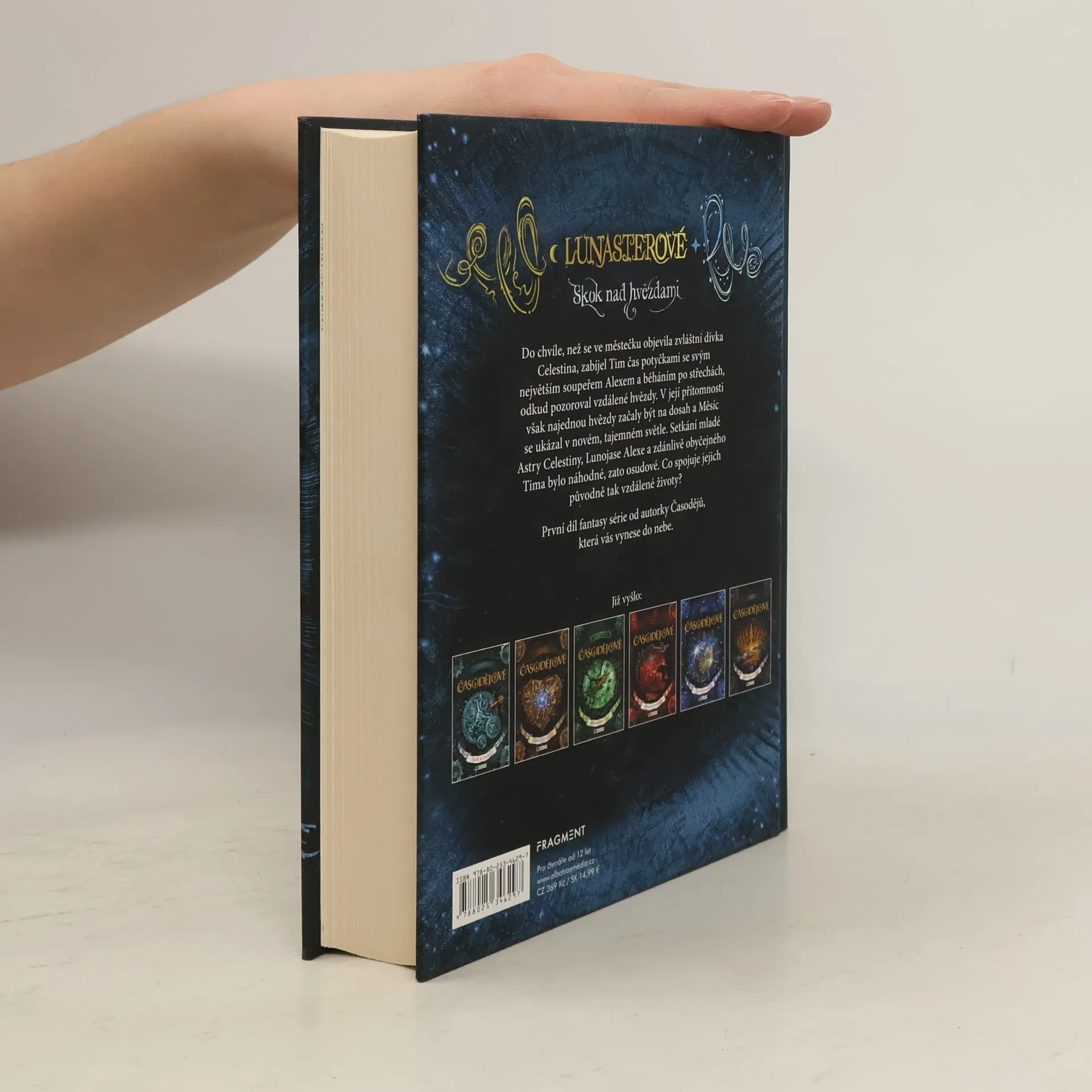 První díl fantasy série od autorky Časodějů, která vás vynese do nebe. Vítejte ve světě Lunasterů. Podobá se tomu našemu, v mnoha ohledech je ale velmi odlišný. Mimo obyčejných beztvářných ho obývají okřídlení Lunojasní, jejichž síla je spojená s Měsícem, a Asterové – hvězdní skokani, kteří umí vyhledávat zvláštní znaky a najít podle nich cesty do jiných světů. Mezi Lunojasnými a Astery panuje dlouholetá rivalita, ale jejich osudy jsou zároveň vzájemně provázané… Do chvíle, než se ve městečku objevila zvláštní dívka Celestina, zabíjel Tim čas potyčkami se svým největším soupeřem Alexem, běháním po nočních ulicích a běháním po střechách, odkud pozoroval krásné a vzdálené hvězdy. V její přítomnosti však najednou hvězdy začaly být na dosah a Měsíc se začal ukazovat v novém, tajemném světle. Setkání mladé Astry Celestiny, Lunojase Alexe a zdánlivě obyčejného beztvářného Tima bylo náhodné, zato osudové. Co spojuje jejich původně tak vzdálené životy? Jakou bariéru bude muset Tim překonat? Co bylo předpovězeno Alexovi ve starodávné věštbě a proč se Celestině tak často zdá zvláštní sen o dvanácti princeznách? Nová fantasy série od autorky Časodějů.