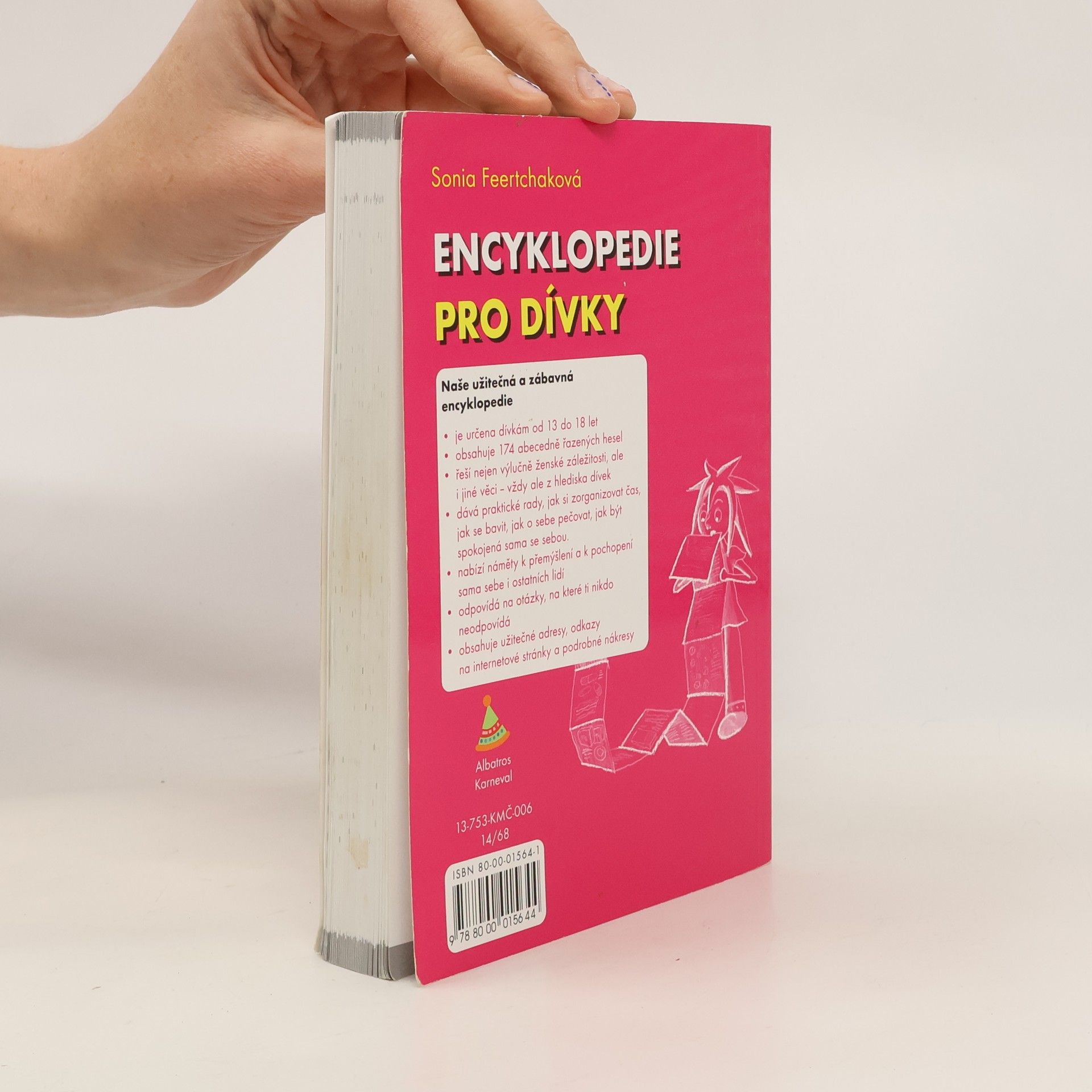 Užitečná a zábavná encyklopedie pro dospívající dívky řeší výhradně záležitosti ženské nebo z pohledu ženy. Odpovídá na otázky, na které neodpovídá nikdo jiný! Dává praktické rady a náměty prostřednictvím malých kurzů - o nasazování prezervativu, o ženských pohlavních orgánech, o žárlivosti, o znásilnění, o výtoku, o vložkách, ale i o sportu, výživě, svádění, …