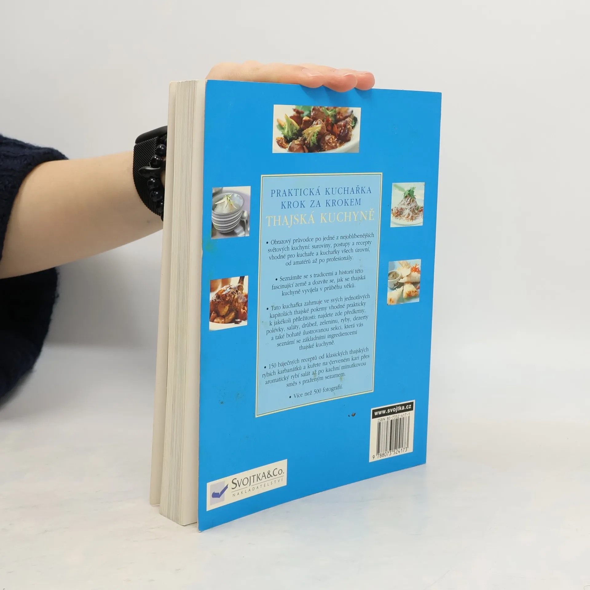 Praktická kuchařka krok za krokem. Obrazový průvodce po jedné z nejoblíbenějších světových kuchyní: suroviny, postupy a recepty vhodné pro kuchaře a kuchařky všech úrovní, od amatérů až po profesionály. Seznámíte se s tradicemi a historií této fascinující země a dozvíte se, jak se thajská kuchyně vyvíjela v průběhu věků. Tato kuchařka zahrnuje ve svých jednotlivých kapitolách thajské pokrmy vhodné prakticky k jakékoli příležitosti: najdete zde předkrmy, polévky, saláty, drůbež, zeleninu, ryby, dezerty a také bohatě ilustrovanou sekci, která vás seznámí se základními ingrediencemi thajské kuchyně. 150 báječných receptů od klasických thajských rybích karbanátků a kuřete na červeném kari přes aromatický rybí salát až po kachní minutkovou směs s praženým sezamem. Více než 500 barevných fotografií.