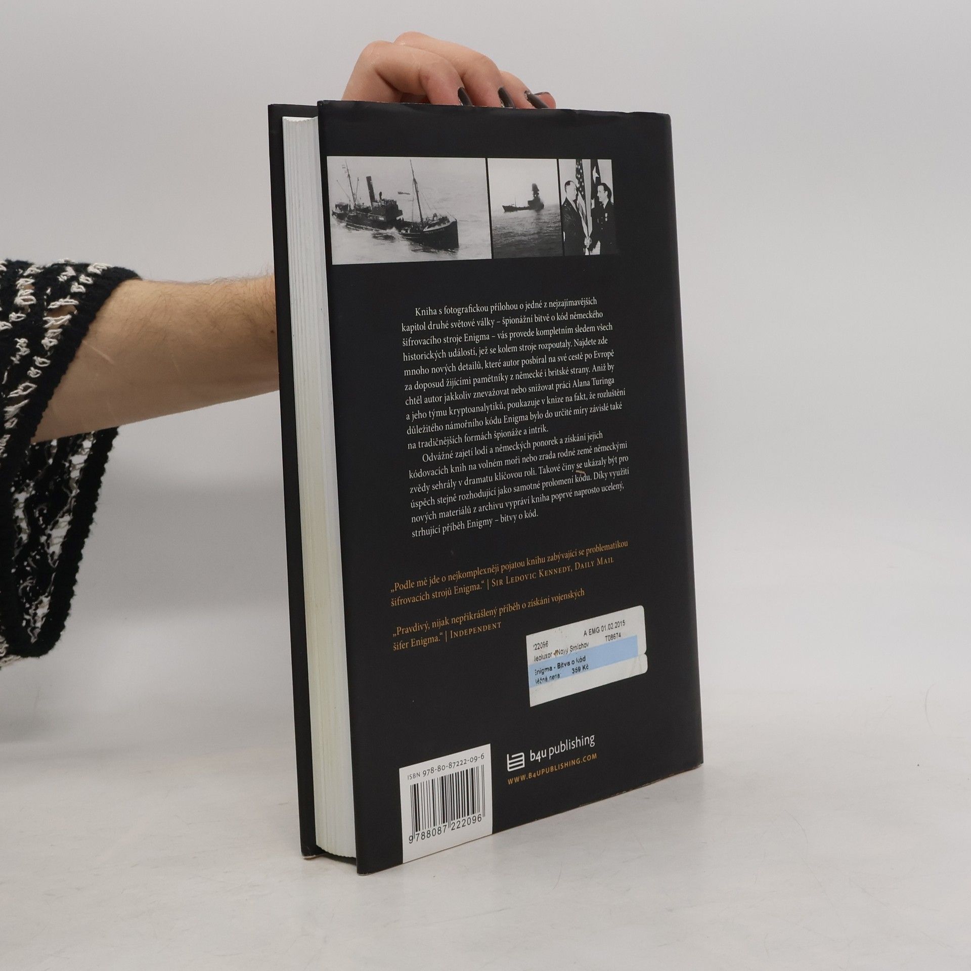 Jedna z nejzajímavějších kapitol druhé světové války – špionážní bitva o kód německého šifrovacího stroje Enigma – přichází v doposud nejlepší a nejkomplexnější knize, která na toto téma byla napsána. Kniha čtenáře provede kompletním sledem všech historických událostí, jež se kolem šifrovacího stroje rozpoutaly. Kniha podává velmi podrobný a souvislý popis historických událostí, které se vztahují k prolomení šifrátoru Enigma, a doplňuje ho o vyprávění životních příběhů protagonistů tohoto fascinujícího příběhu, který patřil mezi rozhodující okamžiky druhé světové války. Velmi podrobně a plasticky popisuje příběhy námořníků, kteří s nasazením vlastních životů získali důležitý šifrový materiál z německých ponorek. Publikaci ocení i odborník, protože v dodatcích ke knize jsou detailně shrnuty postupy, jichž bylo využíváno pro zisk nastavení šifrátoru, a to včetně některých méně známých (jako například metoda charakteristik, řádkování, puntíkování, banburismus).