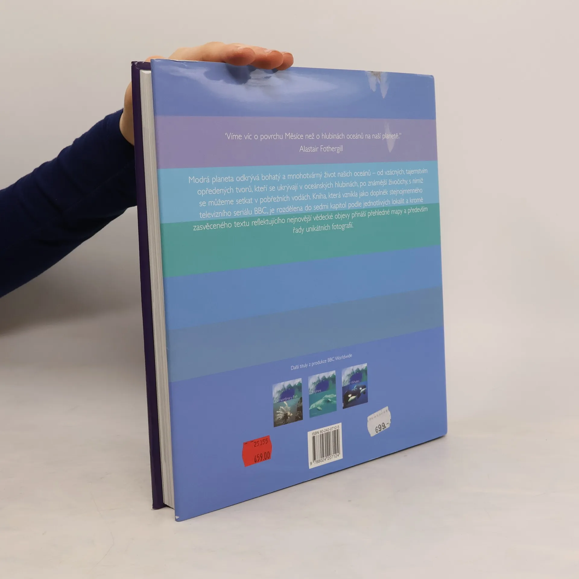 Kniha vznikla jako doprovod televizního seriálu Modrá planeta, produkovaného společností BBC. Vědci, spisovatelé a kameramani vytvořili jedinečný souborný portrét hlubokých vod oceánů, tohoto vzrušujícího a málo známého světa. Tištěno na křídovém papíře, doplněno grafy, ilustracemi a nádhernými fotografiemi.
