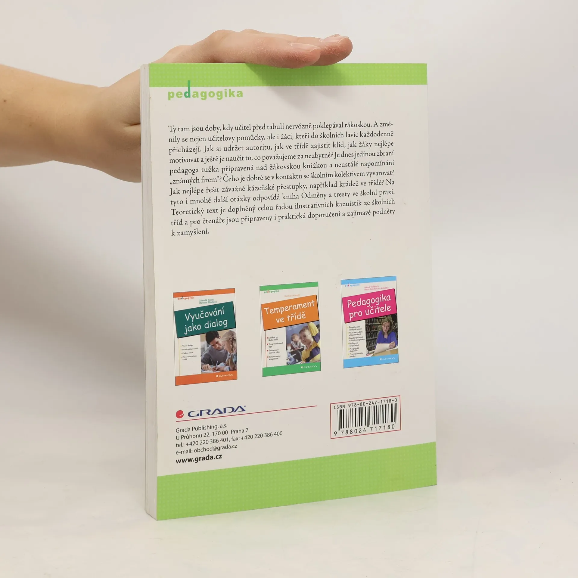 Ty tam jsou doby, kdy učitel před tabulí nervózně poklepával rákoskou. A změnily se nejen učitelovy pomůcky, ale i žáci, kteří do školních lavic každodenně přicházejí. Jak si udržet nezbytnou autoritu, jak ve třídě zajistit klid, jak žáky nejlépe motivovat a ještě je naučit to, co považujeme za nezbytné? Je dnes jedinou zbraní pedagoga tužka připravená nad žákovskou knížkou a neustálé napomínání "známých firem"? Čeho je dobré se v kontaktu se školním kolektivem vyvarovat? Jak nejlépe řešit závažné kázeňské přestupky, například krádež ve třídě? Na tyto i mnohé další otázky odpovídá kniha Odměny a tresty ve školní praxi. Teoretický text je doplněný celou řadou ilustrativních kasuistik ze školních tříd a pro čtenáře jsou připraveny i praktická doporučení a zajímavé podněty k zamyšlení.