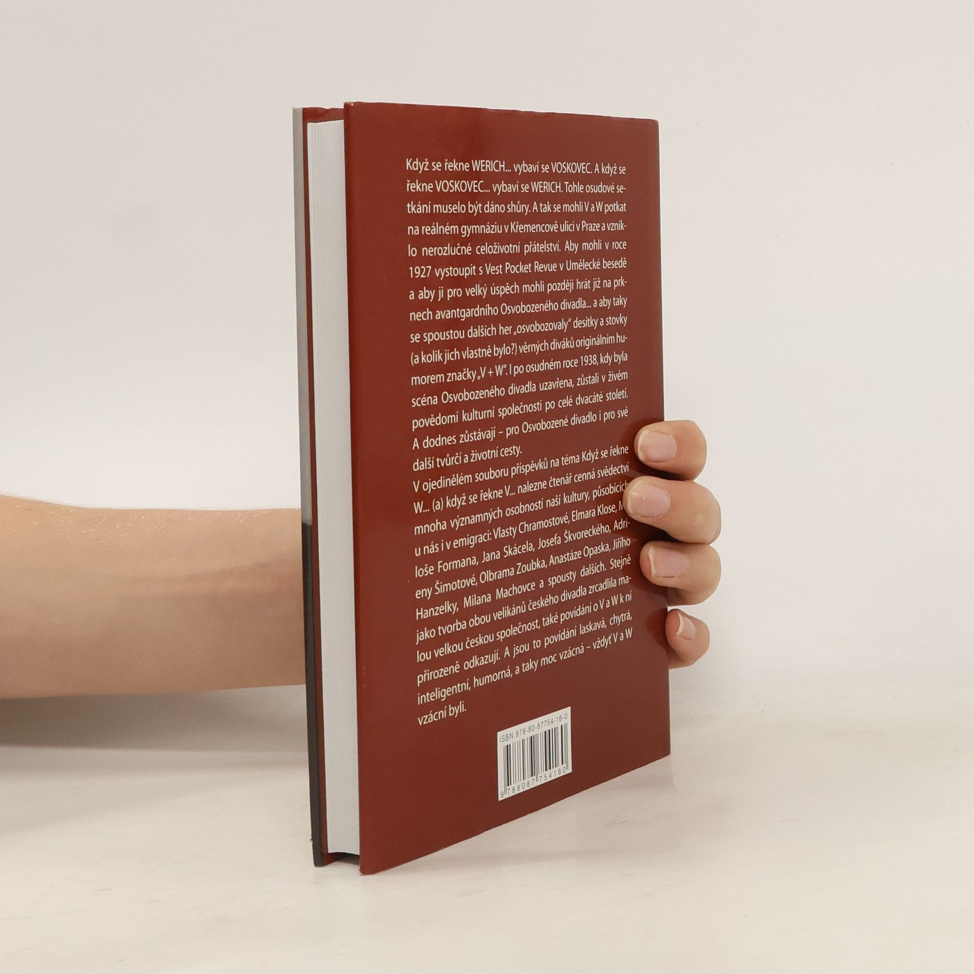 Když se řekne WERICH... vybaví se VOSKOVEC. A když se řekne VOSKOVEC... vybaví se WERICH. Tohle osudové setkání muselo být dáno shůry. A tak se mohli V a W potkat na reálném gymnáziu v Křemenově ulici v Praze a vzniklo nerozlučné celoživotní přátelství. Aby mohli v roce 1927 vystoupit s Vest Pocket Revue v Umělecké besedě a aby ji pro velký úspěch mohli později hrát již na prknech avantgardního Osvobozeného divadla..., a aby taky se spoustou dalších her „osvobozovaly“ desítky a stovky (a kolik jich vlastně bylo?) věrných diváků originálním humorem značky „V + W“. I po osudném roce 1938, kdy byla scéna Osvobozeného divadla uzavřena, zůstali v živém povědomí kulturní společnosti po celé dvacáté století. A dodnes zůstávají - pro Osvobozené divadlo i pro své další tvůrčí a životní cesty. V ojedinělém souboru příspěvků na téma Když se řekne W... (a) když se řekne V... nalezne čtenář cenná svědectví mnoha významných osobností naší kultury, působících u nás i v emigraci: Vlasty Chramostové, Elmara Klose, Miloše Formana, Jana Skácela, Josefa Škvoreckého, Adrieny Šimotové, Olbrama Zoubka, Anastáze Opaska, Jiřího Hanzelky, Milana Machovce a spousty dalších. Stejně jako tvorba obou velikánů českého divadla zrcadlila malou velkou českou společnost, také povídání o V a W k ní přirozeně odkazují. A jsou to povídání laskavá, chytrá, inteligentní, humorná, a taky moc vzácná - vždyť V a W vzácní byli.