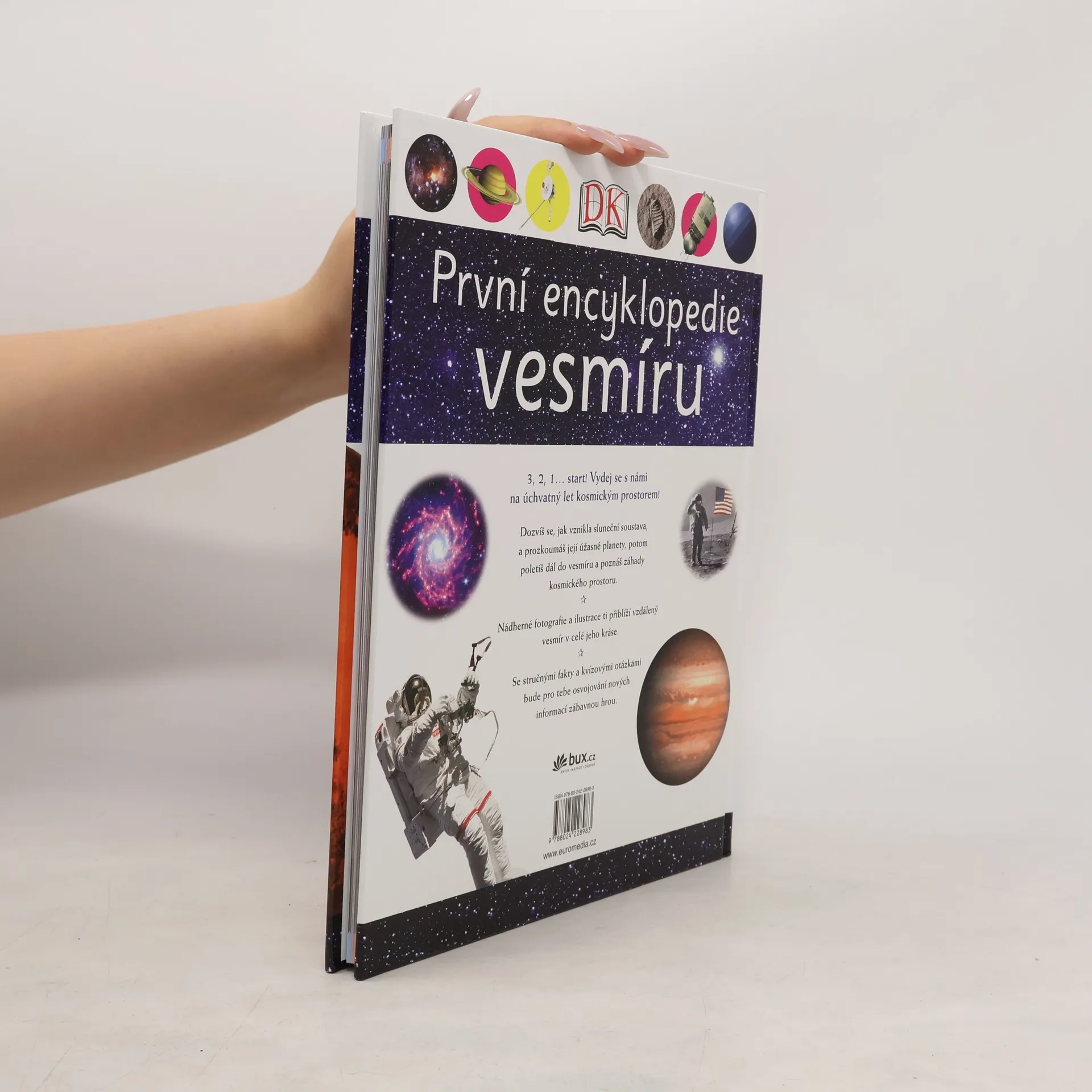 Právě vychází první svazek nové série pro malé čtenáře a začínající spisovatele, věnovaný vesmíru. V encyklopedii děti najdou informace o tom, jak vznikla sluneční soustava, poznají její planety a vydají se na cestu do hlubin tajemného vesmíru. Poutavé texty provázejí názorné ilustrace a úchvatné fotografie ukazující vesmír v celé jeho kráse. Se stručnými fakty a zábavnými kvízy se získávání nových informací stane zábavou.