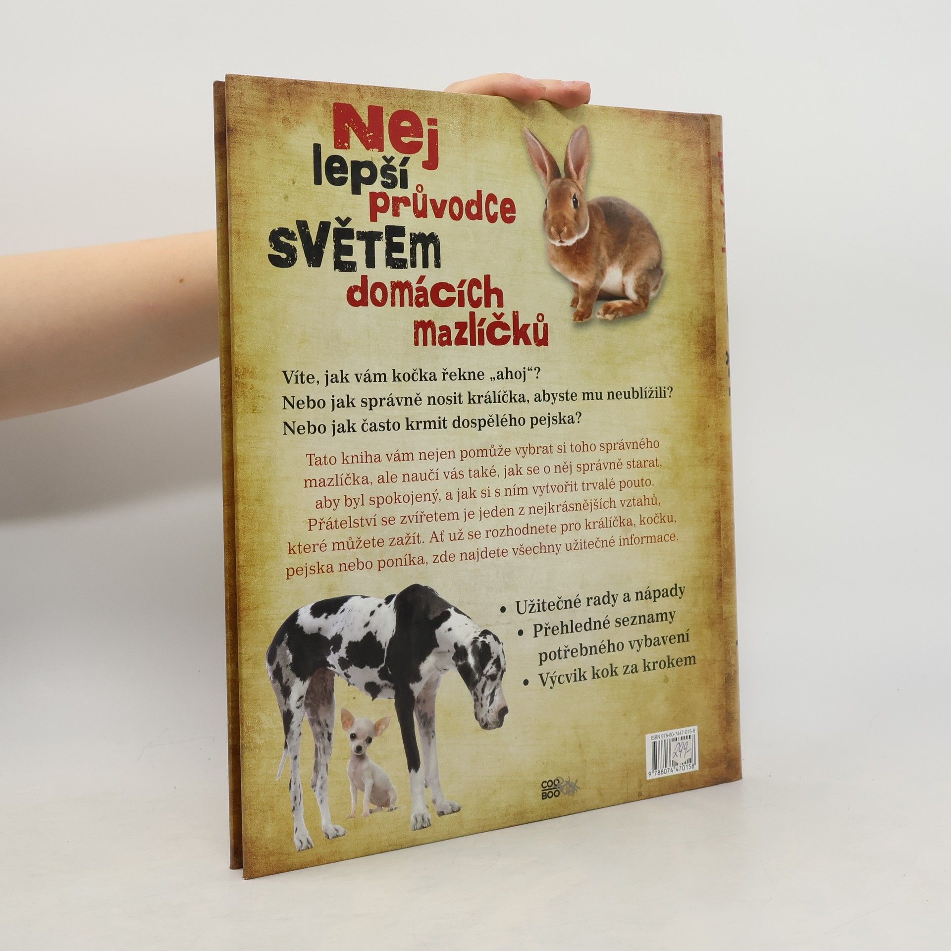 Víte, jak vám kočka řekne „ahoj“? Nebo jak správně nosit králíčka, abyste mu neublížili? Nebo jak často krmit dospělého pejska? Tato kniha vám nejen pomůže vybrat si toho správného mazlíčka, ale naučí vás také, jak se o něj správně starat, aby byl spokojený, a jak si s ním vytvořit trvalé pouto. Přátelství se zvířetem je jeden z nejkrásnějších vztahů, které můžete zažít. Ať už se rozhodnete pro králíčka, kočku, pejska nebo poníka, zde najdete všechny užitečné informace.
