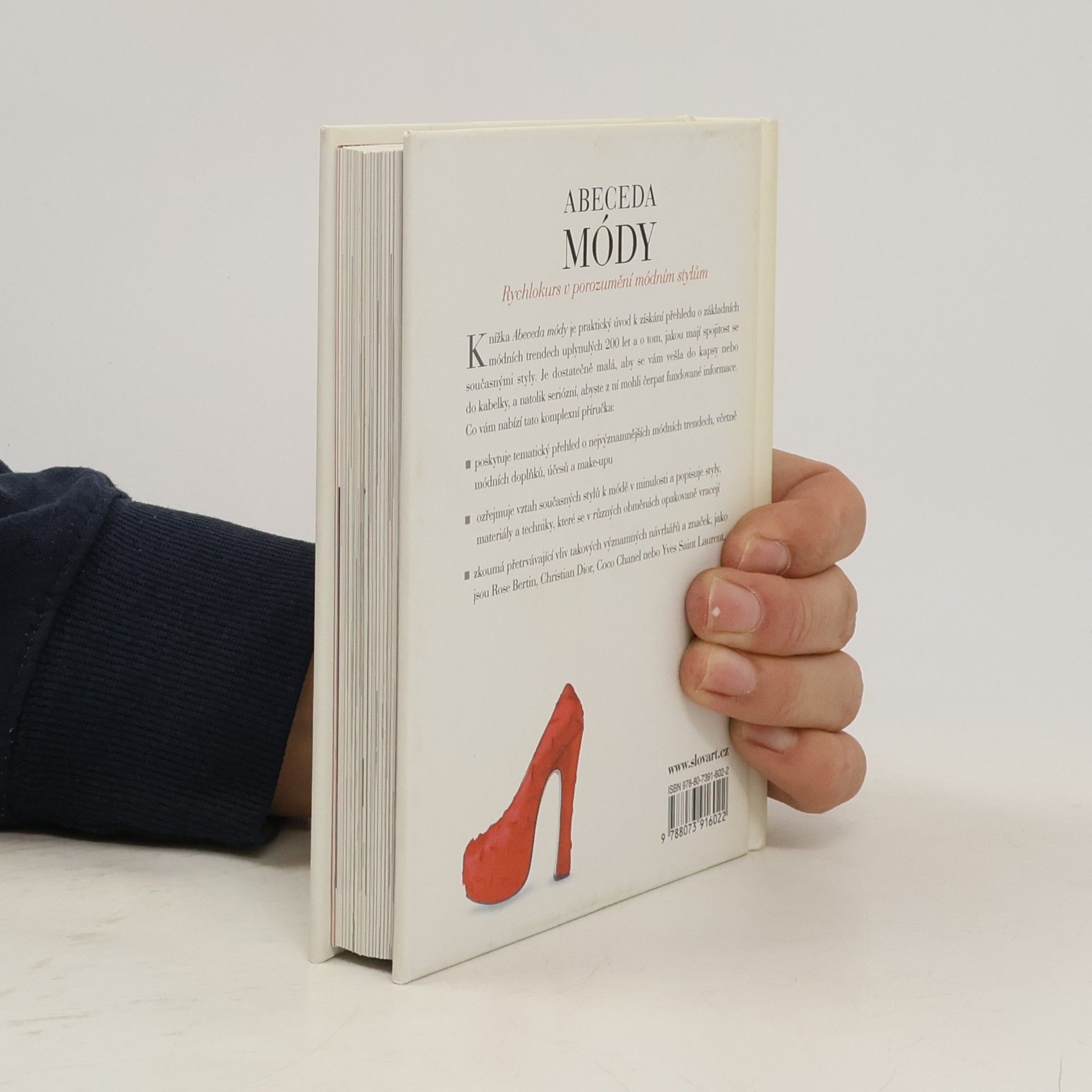 Móda je všude kolem nás a jen málokdo jí zůstává neovlivněn. A přesto: kolik lidí zná původ malých černých šatů, buřinky nebo dámského kalhotového kostýmu? Kolik lidí dokáže přesně určit slavnou značku kožené bundy, kterou měl na sobě Marlon Brando v Divochovi nebo proč se kabelce Chanel říká 2.55? Abeceda módy představuje hlavní módní styly uplynulých 200 let a dává je do souvislosti se současnými módními trendy. Vysvětluje charakteristické rysy jednotlivých looků – od neoklasicistního po gotiku, od empíru po punk nebo military styl – a rukopisy jednotlivých návrhářských značek. Kapitoly o technikách a materiálech navíc přibližují technické zázemí módní tvorby.