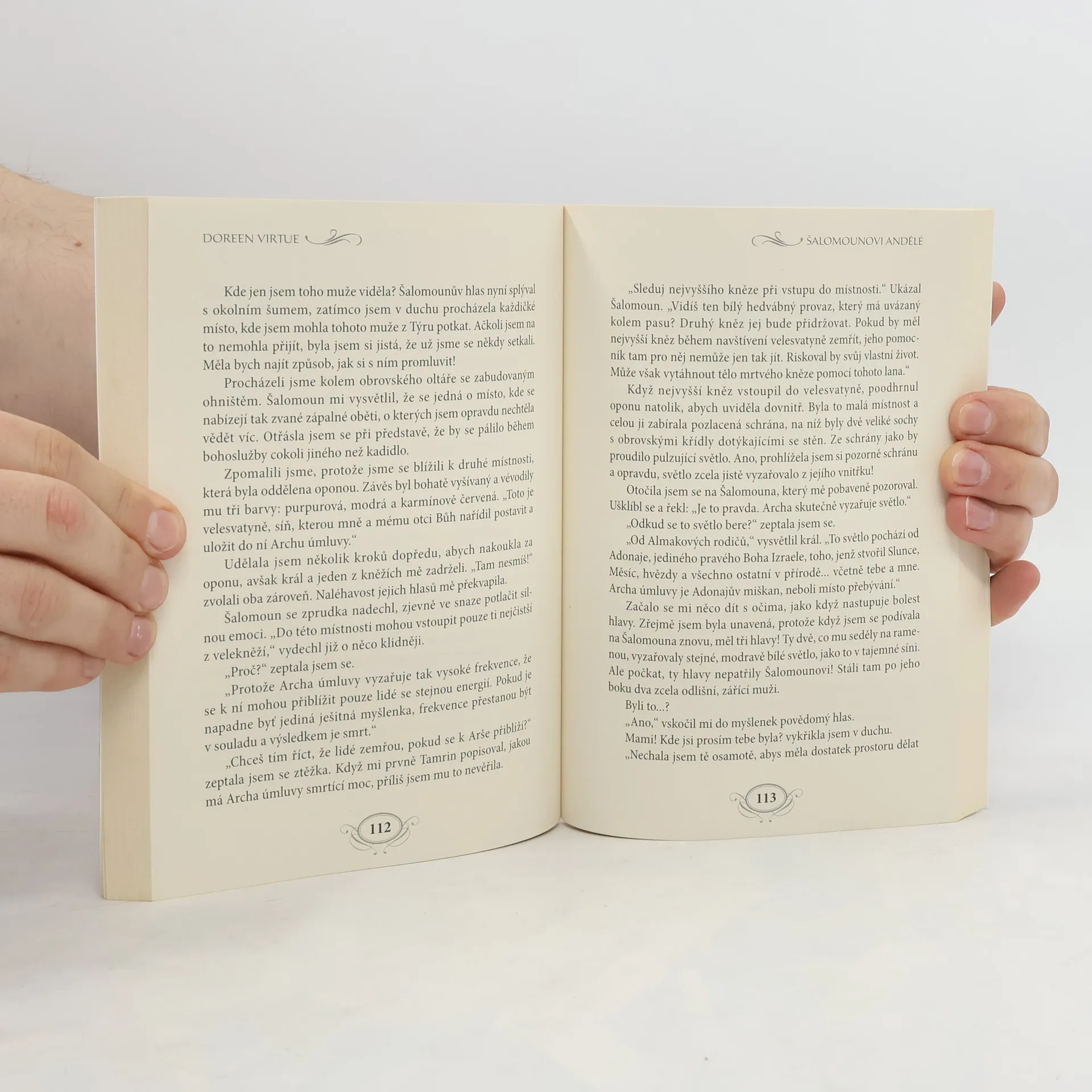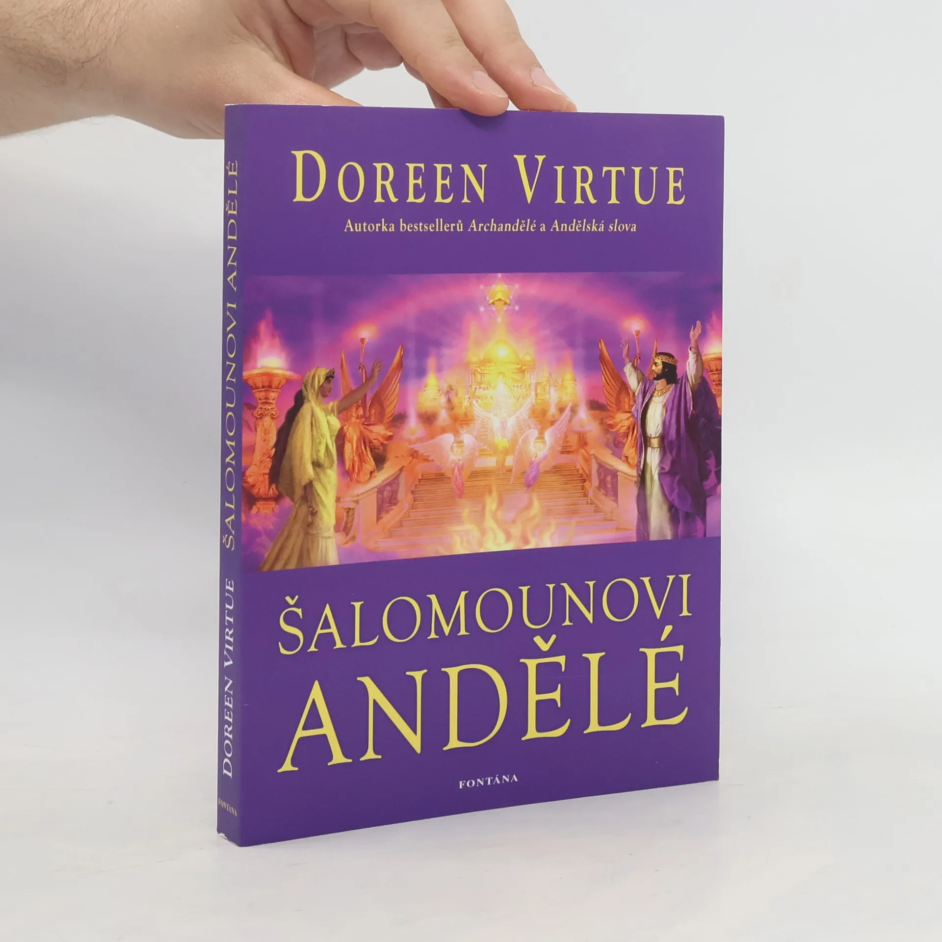Král Šalomoun dokázal využít samotnou energii vesmíru, aby postavil chrám a dosáhl moudrosti a všech podob bohatství, jež život nabízí. To jediné, co postrádal, byla opravdová láska. Makeda, královna ze Sáby, byla mladá a plná touhy poznávat svět. Během své dlouhé cesty, na jejímž konci se měla setkat s králem Šalomounem, nahlédla do tajů říše džinů a naučila se pracovat s magickým světlem slunce a měsíce, přesto stále nevěděla, jak uchopit svůj život pevně do rukou. Šalomounovi andělé, první román z pera Doreen Virtue, je kulturně přesným vyobrazením doby, založeným na pečlivém studiu historických, biblických a archeologických faktů. Dozvíte se v něm, jak setkání Šalomouna a Makedy navždy změnilo jejich život. Podíváte se na svět očima královny ze Sáby a objevíte dávná tajemství, která ukrýval Šalomounův chrám, postavený bez jediného pracovního nástroje. Zjistíte, jakou roli hráli archandělé a posvátná geometrie ve Zjevení a božské magii. Kouzelný a romantický příběh Šalomouna a Makedy vás bude inspirovat ještě dlouho poté, co jej přečtete.