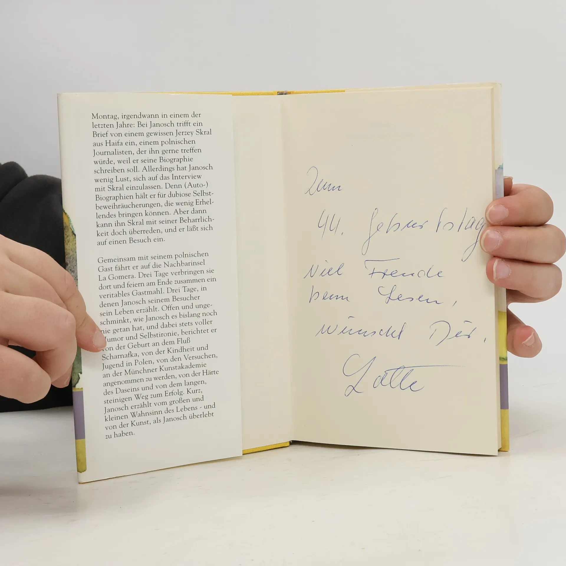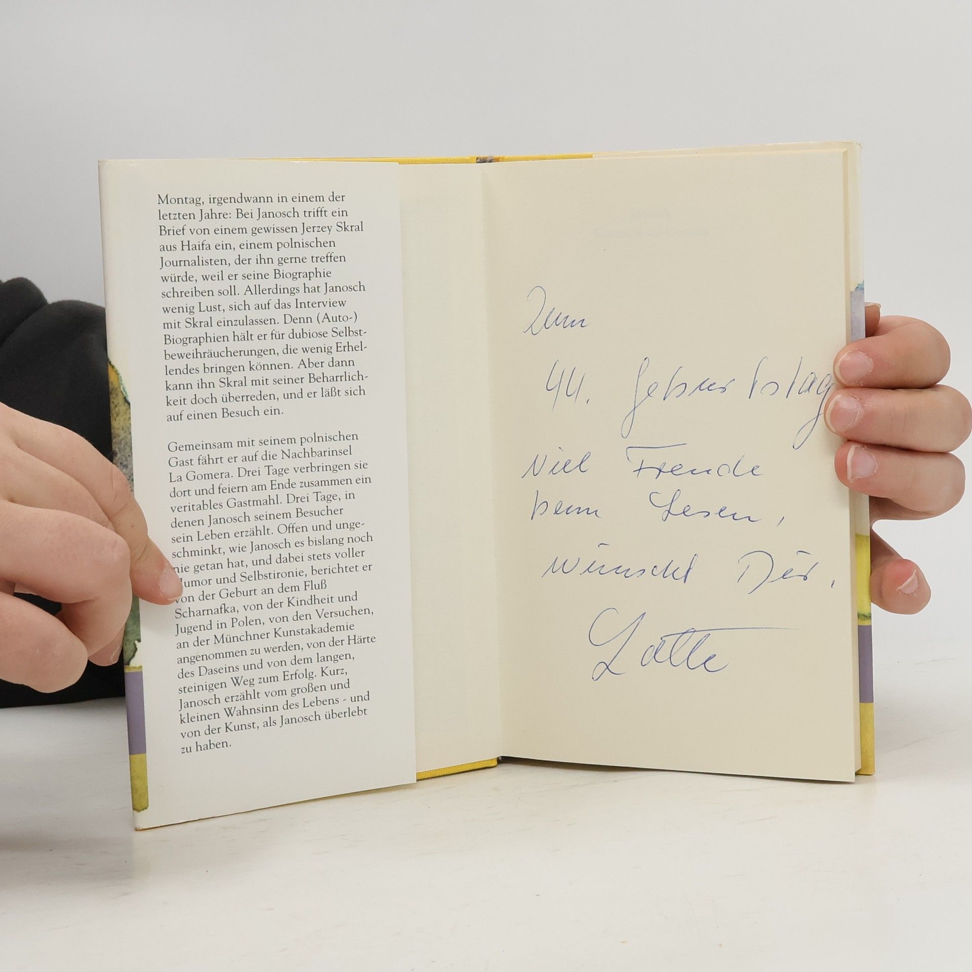 Montag, irgendwann in einem der letzten Jahre: Bei Janosch trifft der Brief eines polnischen Journalisten ein, der seine Biographie schreiben möchte. Eigentlich hält Janosch nichts von Autobiographien, doch der beharrliche Journalist kann ihn doch zu einem Treffen überreden. Und während eines dreitägigen Aufenthaltes auf Gomera beginnt Janosch zu erzählen, vom großen und kleinen Wahnsinn des Lebens.