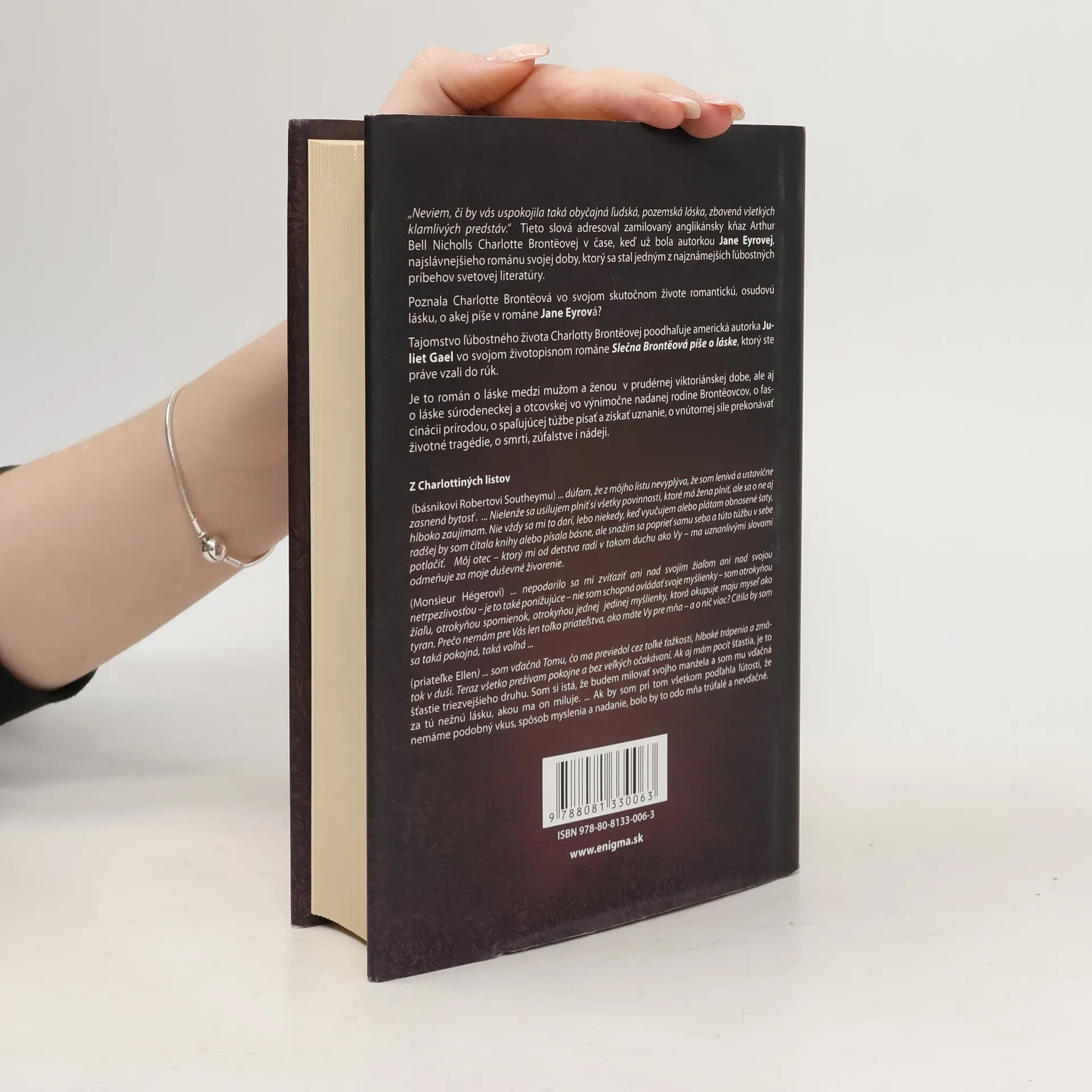 Vo svojom úžasnom románe Slečna Brontová píše o láske, ktorý je melanžou faktu a fikcie, americká spisovateľka Juliet Gael štylisticky pútavo vykresľuje sny a nádeje, vášne a súženia najznámejších sestier-spisovateliek svetovej literatúry a vychádza júc z korešpondencie a dobových dokumentov, si domýšľa, ako láska, dramaticky a nečakane, zasiahla Charlottu Brontovú.