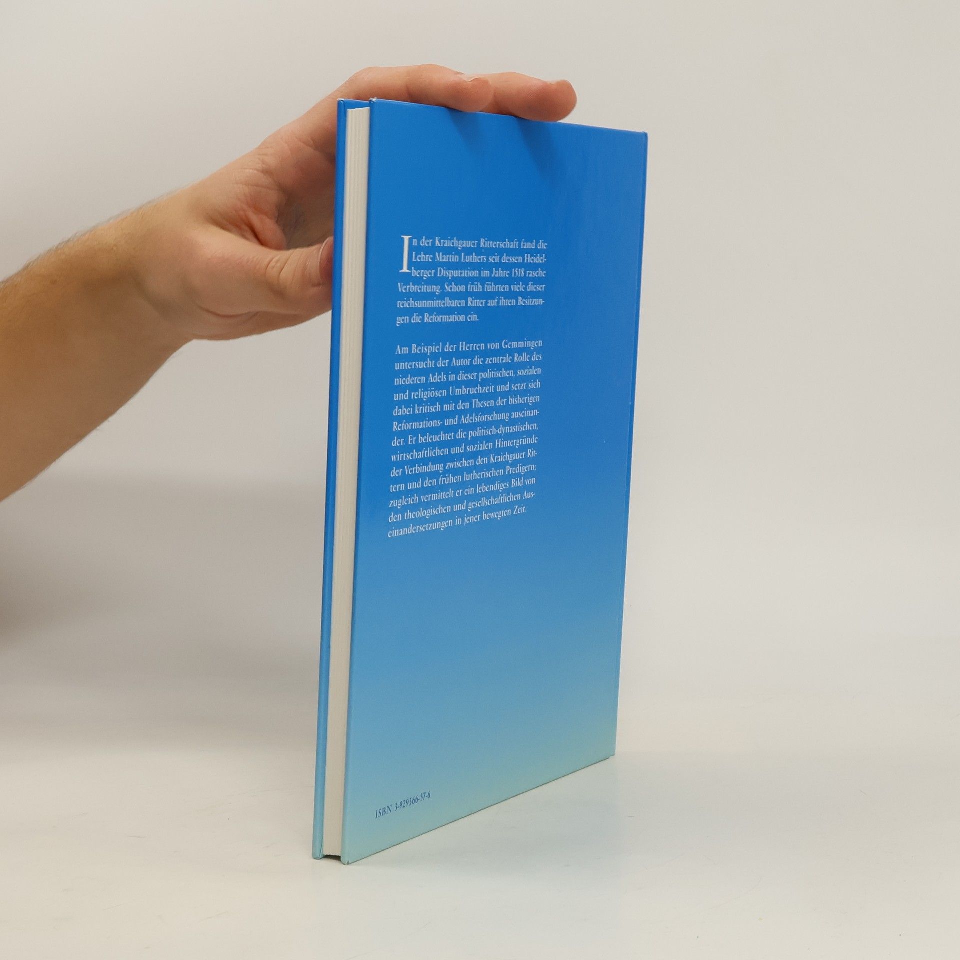 In der Kraichgauer Ritterschaft fand die Lehre Martin Luthers seit dessen Heidelberger Disputation im Jahre 1518 rasche Verbreitung. Schon früh führten viele dieser reichsunmittelbaren Ritter auf ihren Besitzungen die Reformation ein. Am Beispiel der Herren von Gemmingen untersucht der Autor die zentrale Rolle des niederen Adels in dieser politischen, sozialen und religiösen Umbruchzeit und setzt sich dabei kritisch mit den Thesen der bisherigen Reformations- und Adelsforschung auseinander. Er beleuchtete die politisch-dynastischen, wirtschaftlichen und sozialen Hintergründe der Verbindung zwischen den Kraichgauer Rittern und den frühen lutherischen Predigern; zugleich vermittelt er ein lebendiges Bild von den theologischen und gesellschaftlichen Auseinandersetzungen in jener bewegten Zeit.