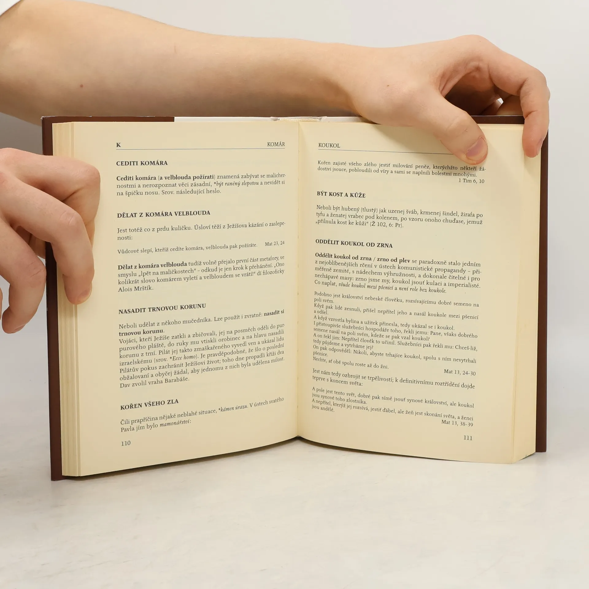 Český jazyk je pro autora této knihy podle vlastních slov tím, čím je pro filatelistu album známek: listuje si v něm. Tentokrát zalistoval v bibli a jejích českých překladech, Husových, Jakoubkových, Štítného a Komenského náboženských výkladech a idiomatických sbírkách od Blahoslava k Zaorálkovi. Výsledkem je slovník, obsahující v tomto druhém, rozšířeném vydání 1400 výrazů a rčení biblického původu a doplněný citacemi z děl věhlasných i méně věhlasných biblistů – a ne vždy uctivými komentáři autora samého.
