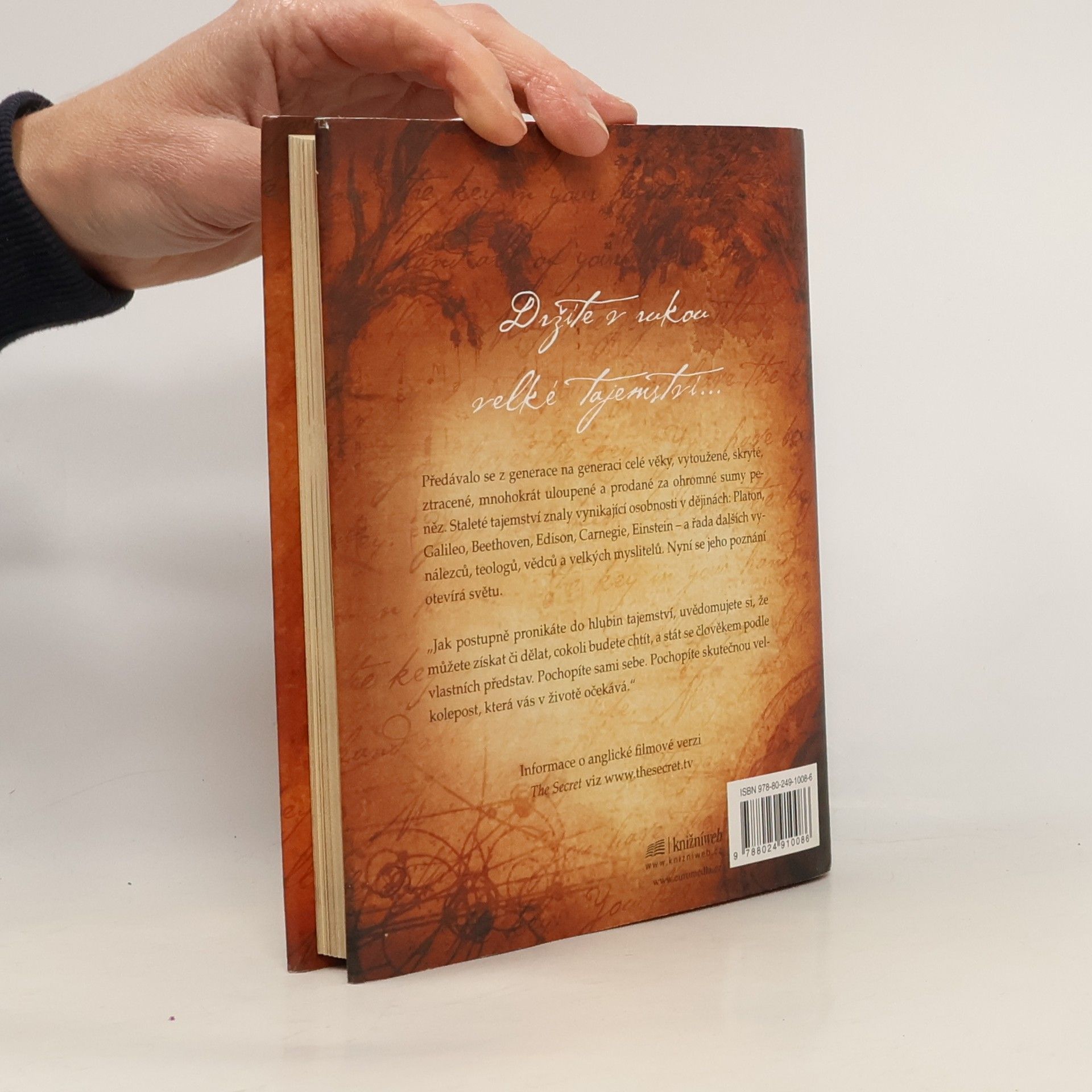 Stojíte na prahu poznání. Fragmenty velkého tajemství se objevují v legendách, mýtech a filozofiích po celá staletí, jen znát tu správnou šifru. Kniha, kterou právě držíte v rukou, shromáždila moudrost předchozích generací a naučí vás dosáhnout všeho, co si přejete - v oblasti peněz, zdraví, vztahů i osobního štěstí. Pochopíte skryté síly, které ve vás dřímají, a odhalíte jejich moc. Učení novodobých mistrů, kteří štěstí, zdraví a bohatství dosáhli, vám ukáže, jak lze tajemství spokojeného života aplikovat na každém kroku.