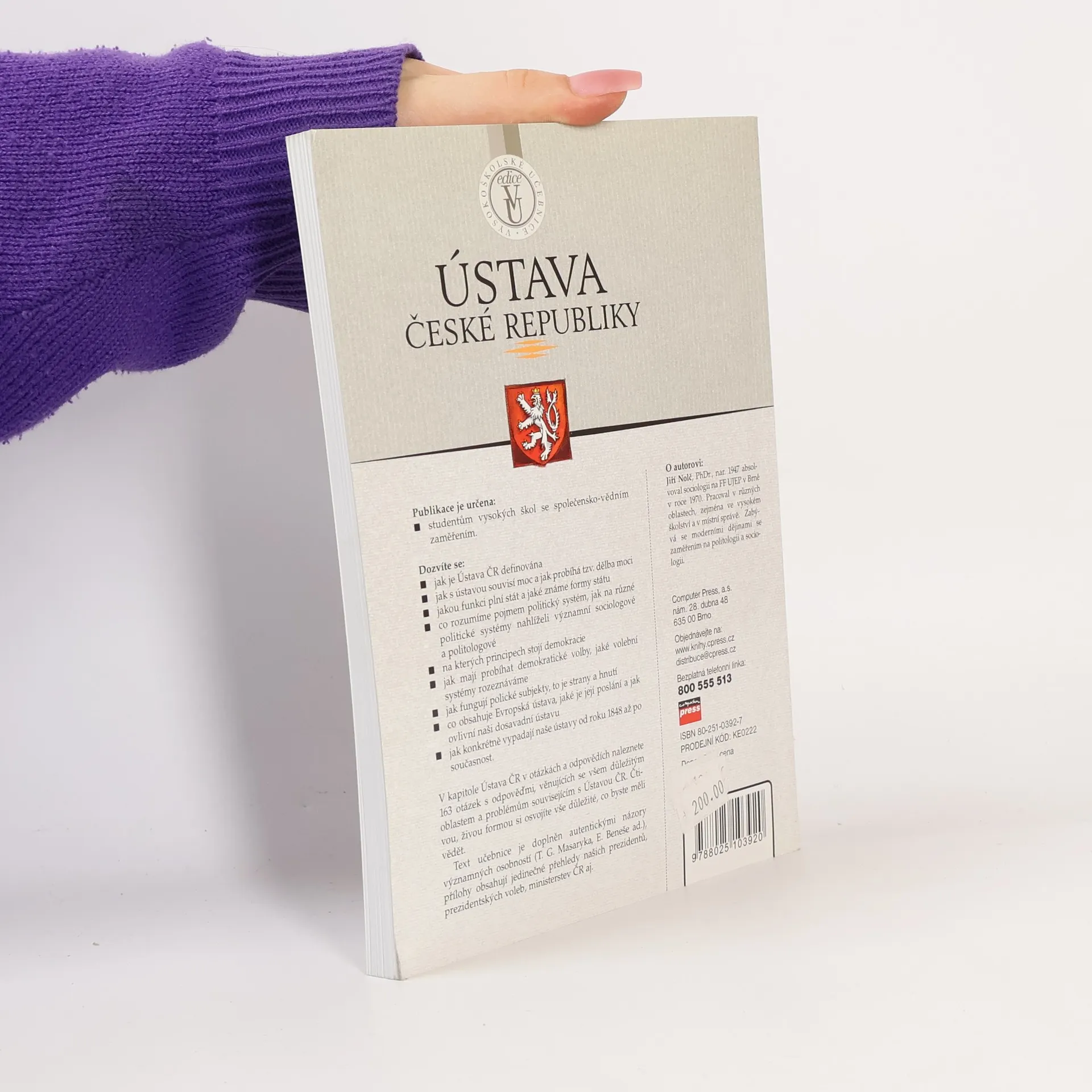 Učebnice je určena pro studenty na fakultách se společensko-vědním zaměřením. Poskytne jim vyčerpávající informace o ústavě České republiky, o tom, jak fungují Parlament ČR, Poslanecká sněmovna, Senát ČR, Ústavní soud, co obsahuje Listina základních práv a svobod ad. Látka je členěna formou otázek a odpovědí, které umožní rychle pochopit a zapamatovat si důležité informace. Součástí publikace je kapitola o českých prezidentech s jejich stručnými životopisy.