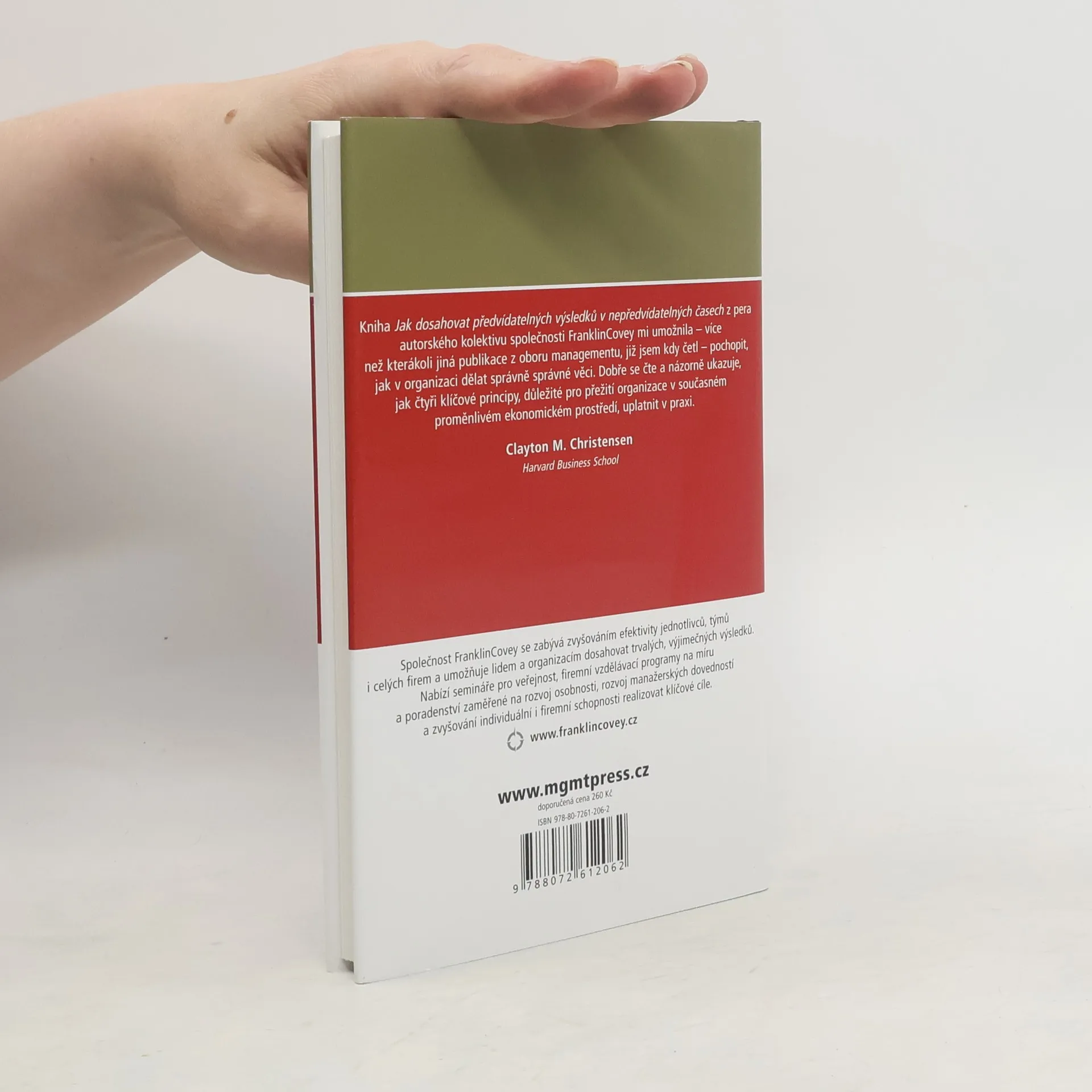 Jedinou věcí, kterou si můžeme v byznysu být jisti, je nejistota. S. R. Covey ve své nejnovější knize ukazuje, že přesto existují organizace, které – bez ohledu na nejisté ekonomické podmínky – dosahují předvídatelných (a skvělých!) výsledků tím, že se za všech okolností řídí čtyřmi klíčovými principy, které jsou trvalé a neměnné (dotahují věci do konce a vynikajícím způsobem realizují své priority, vytvářejí atmosféru důvěry, dosahují vyšší hodnoty s méně zdroji, nešíří strach).