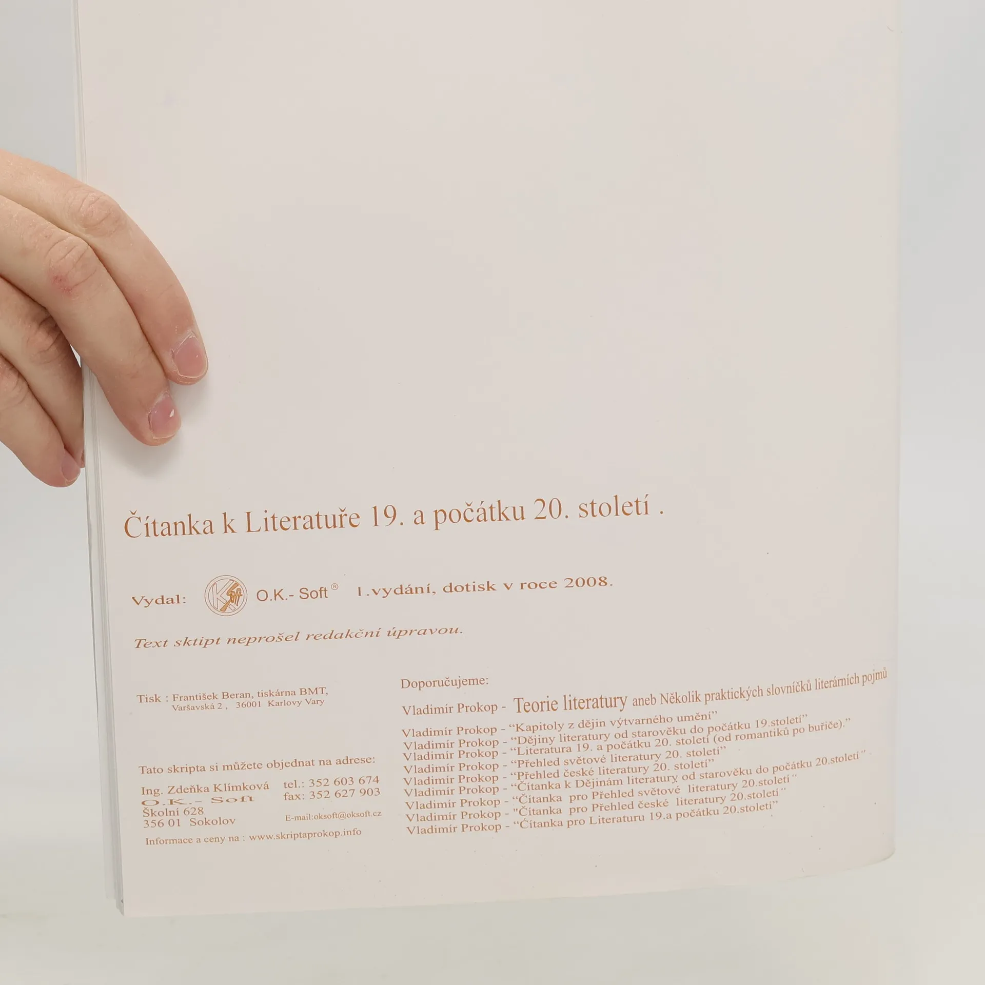 Čítanka k Literatuře 19. a počátku 20. století (od romantiků po buřiče), Vladimír Prokop