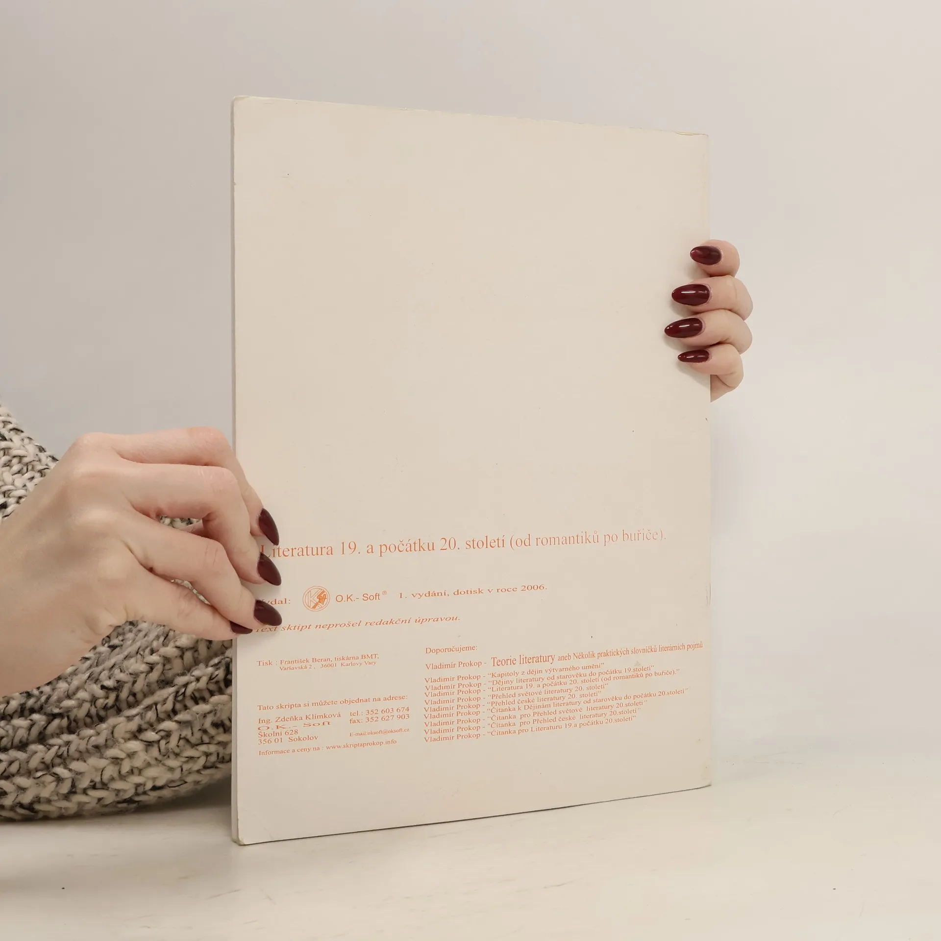 Nous avons un total de du titre Čítanka k literatuře 19. a počátku 20. století (od romantiků po buřiče) (2006).