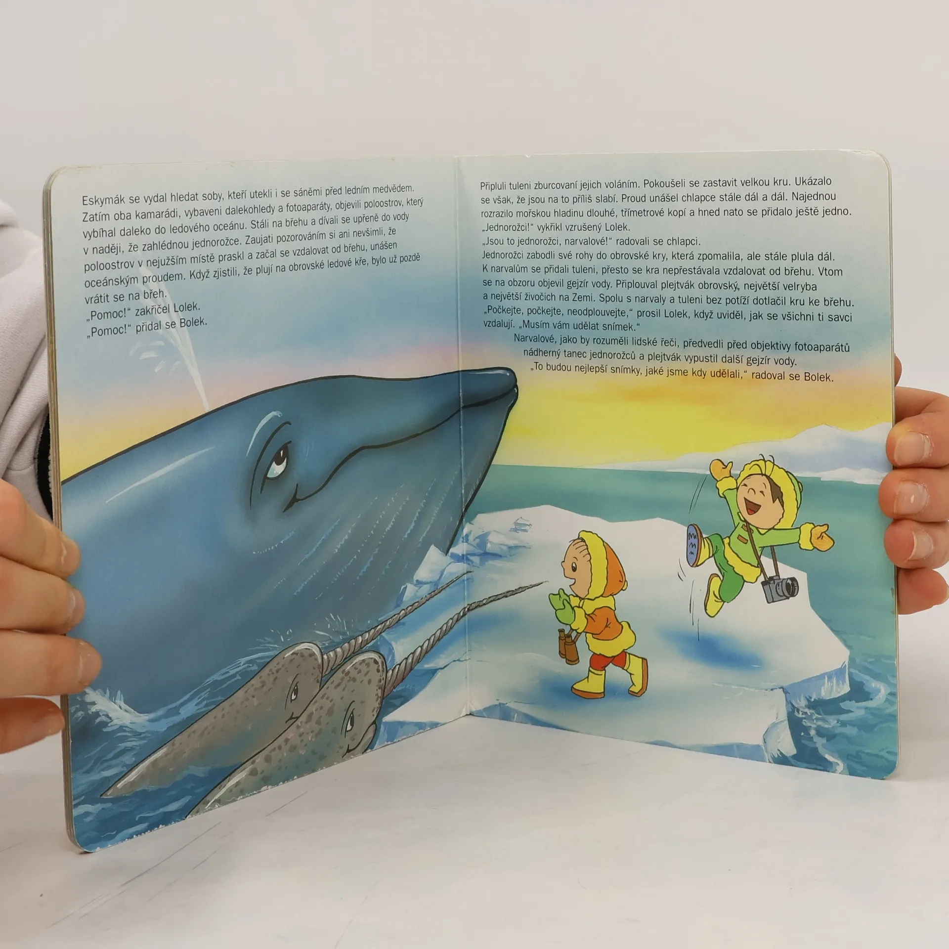Bolek a Lolek stavějí iglú, prchají před ledním medvědem, jsou unášeni na ledové kře a fotografují dva narvaly, které ani místní starý Eskymák dosud nepotkal.