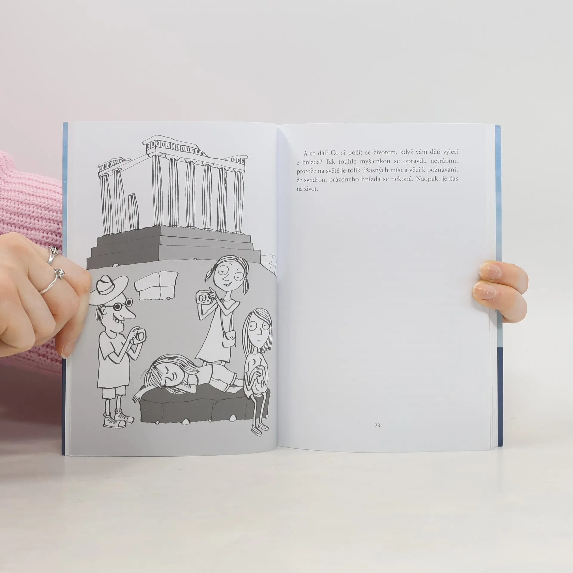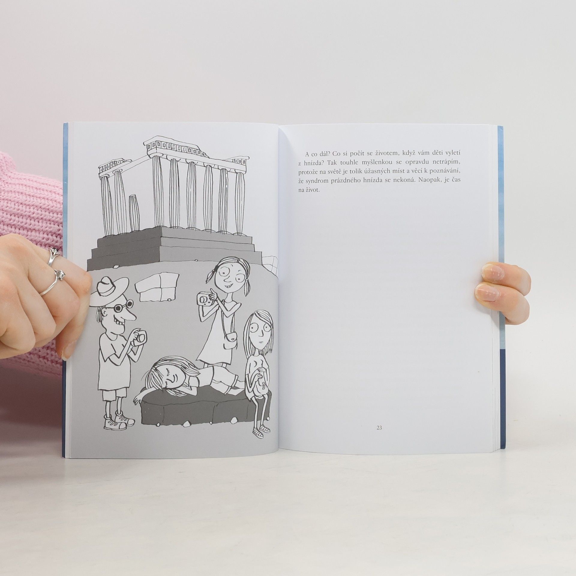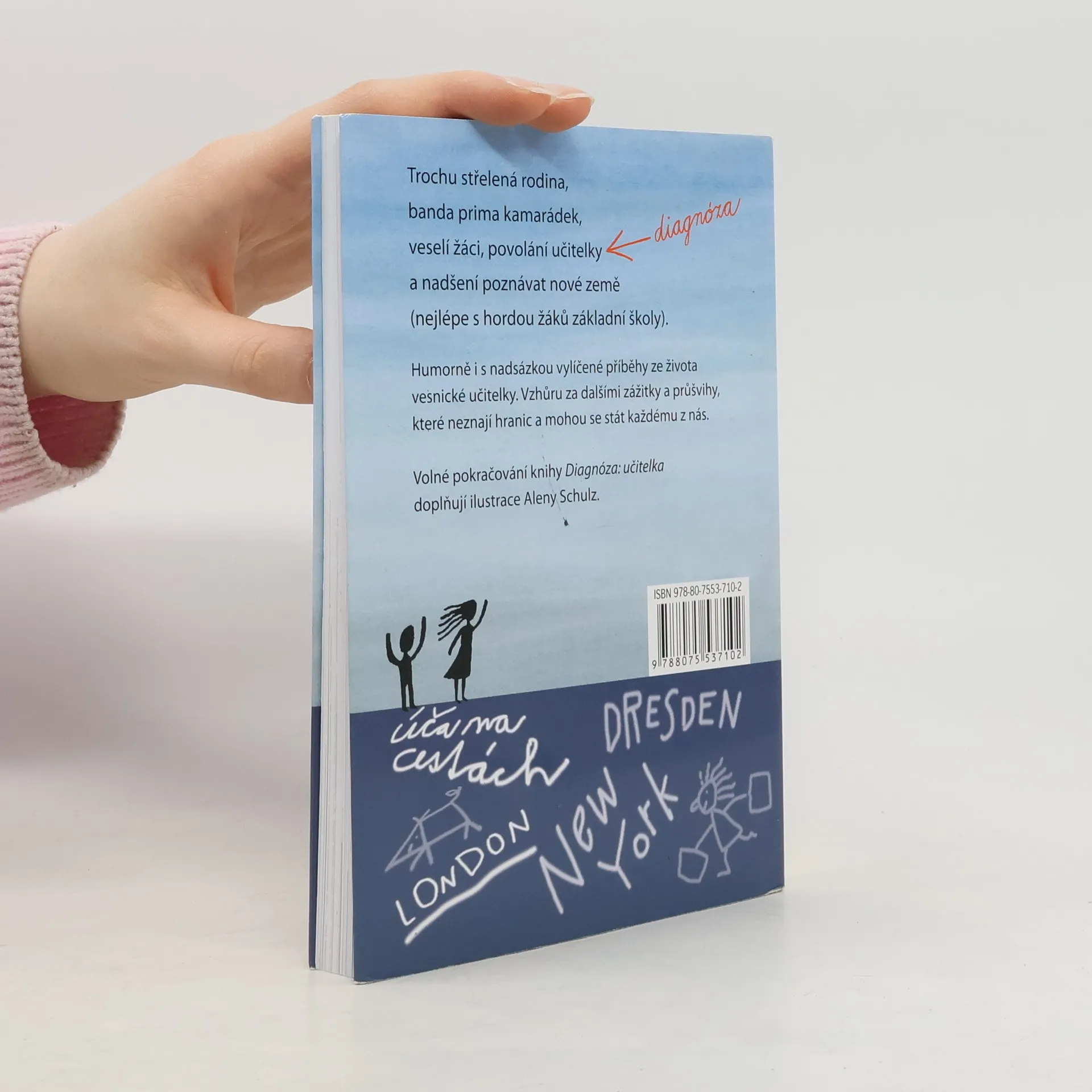 Trochu střelená rodina, banda prima kamarádek, veselí žáci, povolání učitelky a nadšení poznávat nové země (nejlépe s hordou žáků základní školy). Humorně i s nadsázkou vylíčené příběhy ze života vesnické učitelky. Vzhůru za dalšími zážitky a průšvihy, které neznají hranic a mohou se stát každému z nás. Volné pokračování knihy Diagnóza: učitelka doplňují ilustrace Aleny Schulz.
