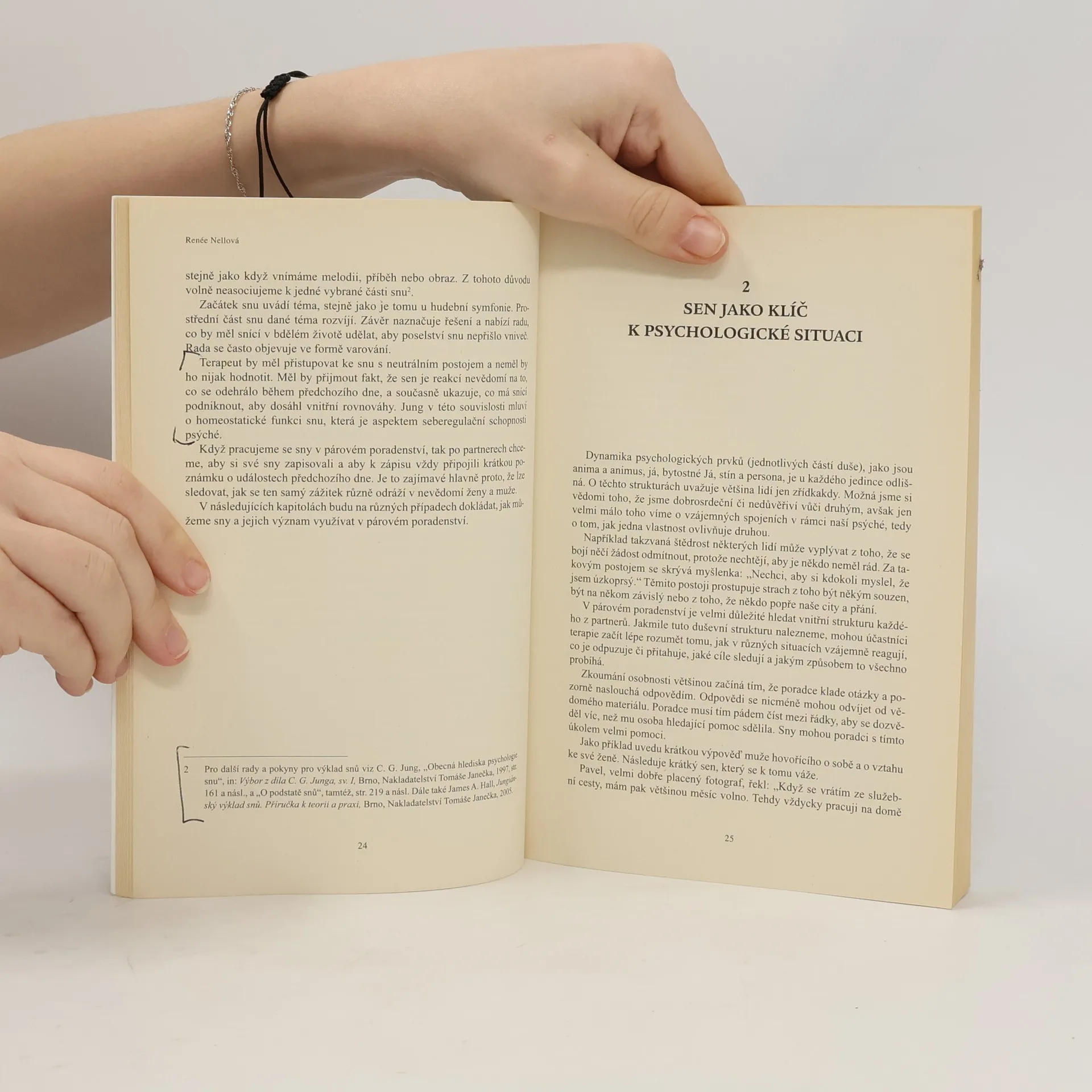 Smysl každé terapie a také párového poradenství tkví v tom, že pomáhají lidem vést dialog se sebou samým. Takový dialog představuje způsob, jak nastoupit na cestu individuace. Jedním z hlavních úkolů individuačního procesu je usmíření protikladů v psýché, především pak rozporu mezi vědomím a nevědomím. Sny vytvářejí most mezi těmito dvěma světy. Manželští a rodinní poradci často v této oblasti nemají valné zkušenosti, neboť výklad snů nebyl součástí jejich výcviku. Renée Nellová na různých příkladech z praxe dokládá, jak lze při párovém poradenství používat sny pro stanovení diagnózy a prognózy, jak se ve snech projevuje reakce nevědomí na terapii, jak se v nich zrcadlí přenos a protipřenos a jakým způsobem sny naznačují další vývoj partnerského vztahu po ukončení terapie.