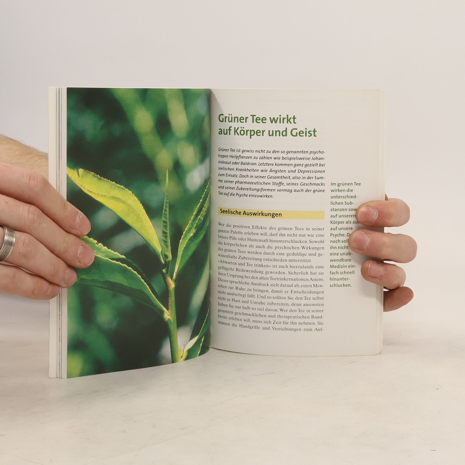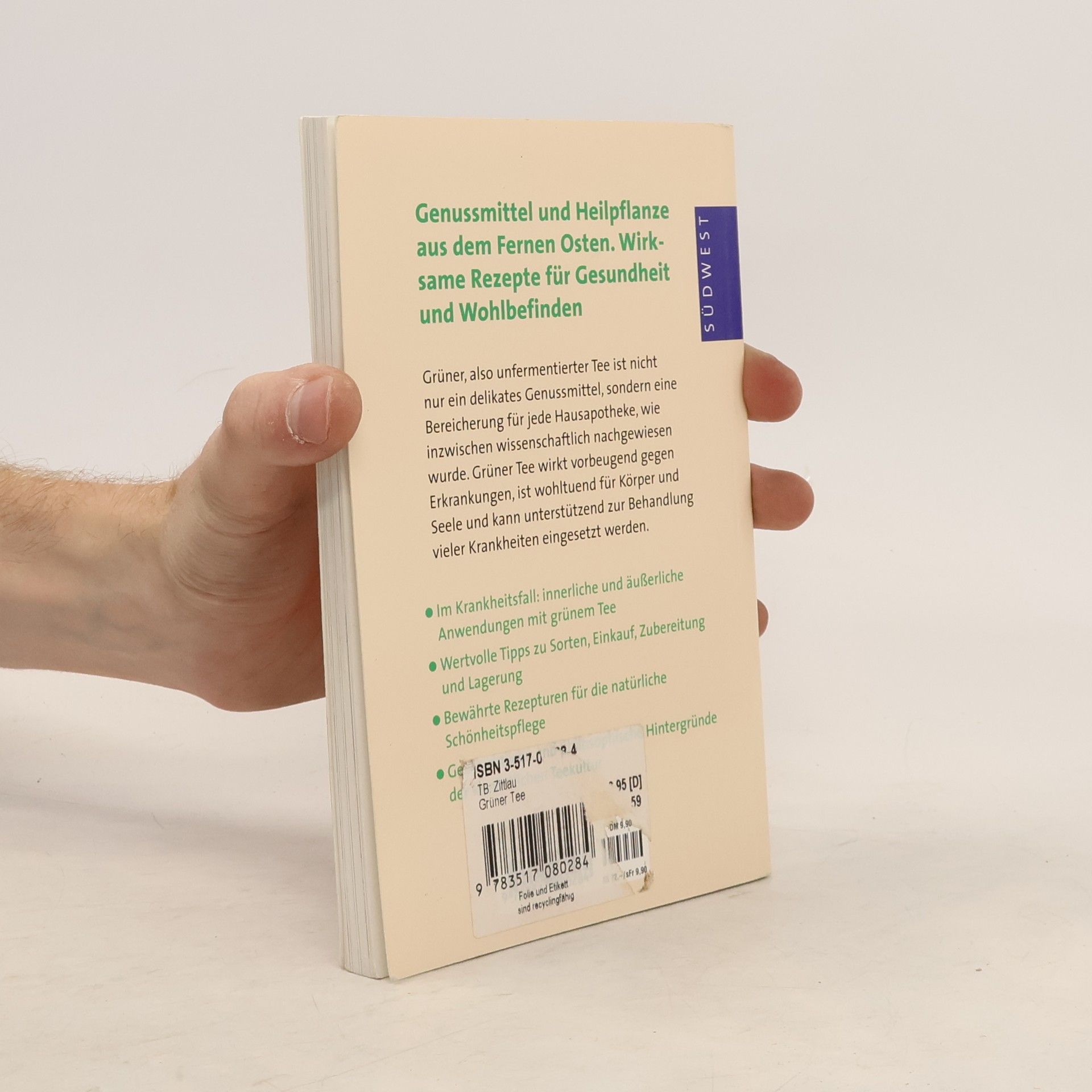 Im Krankheitsfall hilft innerliche und äußerliche Anwendungen mit grünem Tee oft mehr als Tabeltten, die wieder Nebenwirkungen nach sich ziehen. Wertvolle Tips zu Sorten, Einkauf, Zubereitung und Lagerung von grünem Tee fasst dieses Buch zusammen. Es stellt bewährte Rezepturen für die natürliche Schönheitspflege vor und zeigt auf, wann grüner Tee auch Heilmittel ist.