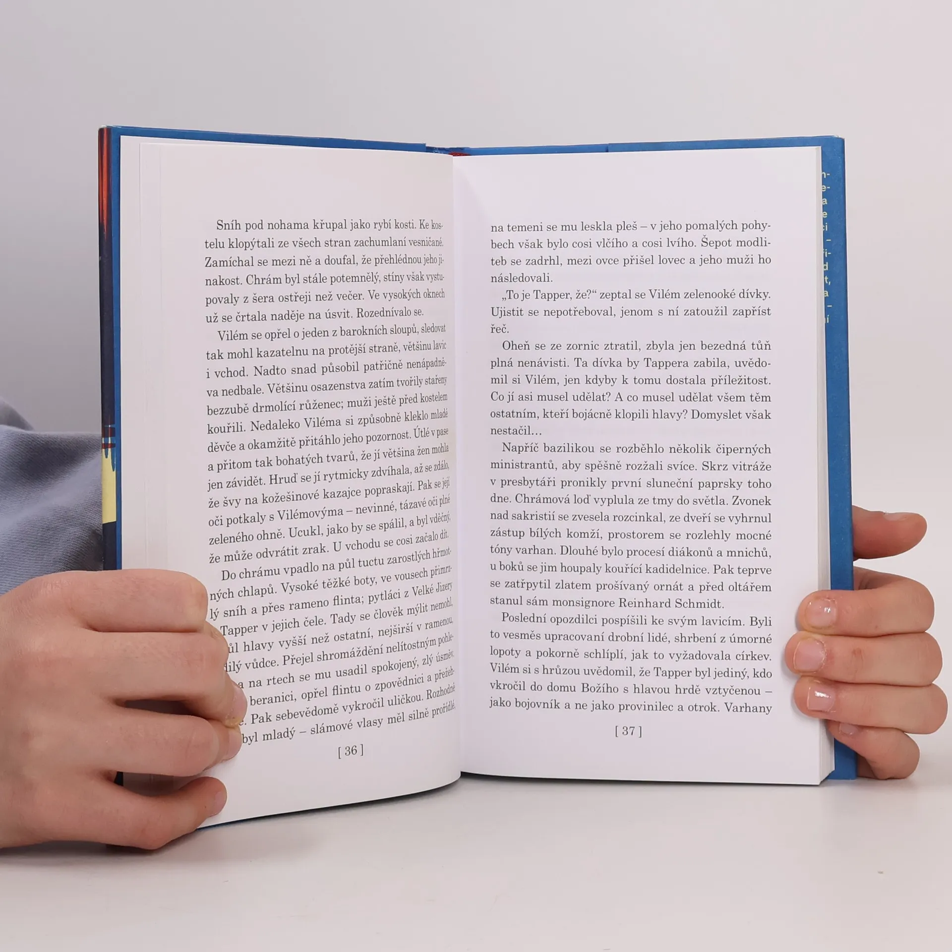 Cesta z Reichenbergu do Hejnic se klikatí strmým, zalesněným průsmykem. Stmívá se, nad horami vyje a běsní sněhová bouře. Během namáhavé jízdy se v dostavníku seznamují dva muži. Otec Vilém – kněz, který prchá před svou minulostí – a doktor Šulc, podivínský lékař z Vídně. Ti dva mají pramálo společného, brzy se však ukáže, že je dohromady nesvedla náhoda, ale něčí lstivý úklad. Oba vědí až příliš o temném případu svatokrádeže. Pátrání se komplikuje, dva týdny po vyloupení hejnického kostela dojde k sérii krvavých vražd. Souvisí to celé s nebezpečnými intrikami, které splétá místní opat? A co tají bývalý vojenský kaplan z nedalekého Bílého Potoka? Vyšetřování posléze zavleče naše hrdiny hluboko do hor: mezi pytláky a pašeráky, jimž vládne pověstný čarostřelec Tapper. Je mrazivý únor léta Páně 1789.
