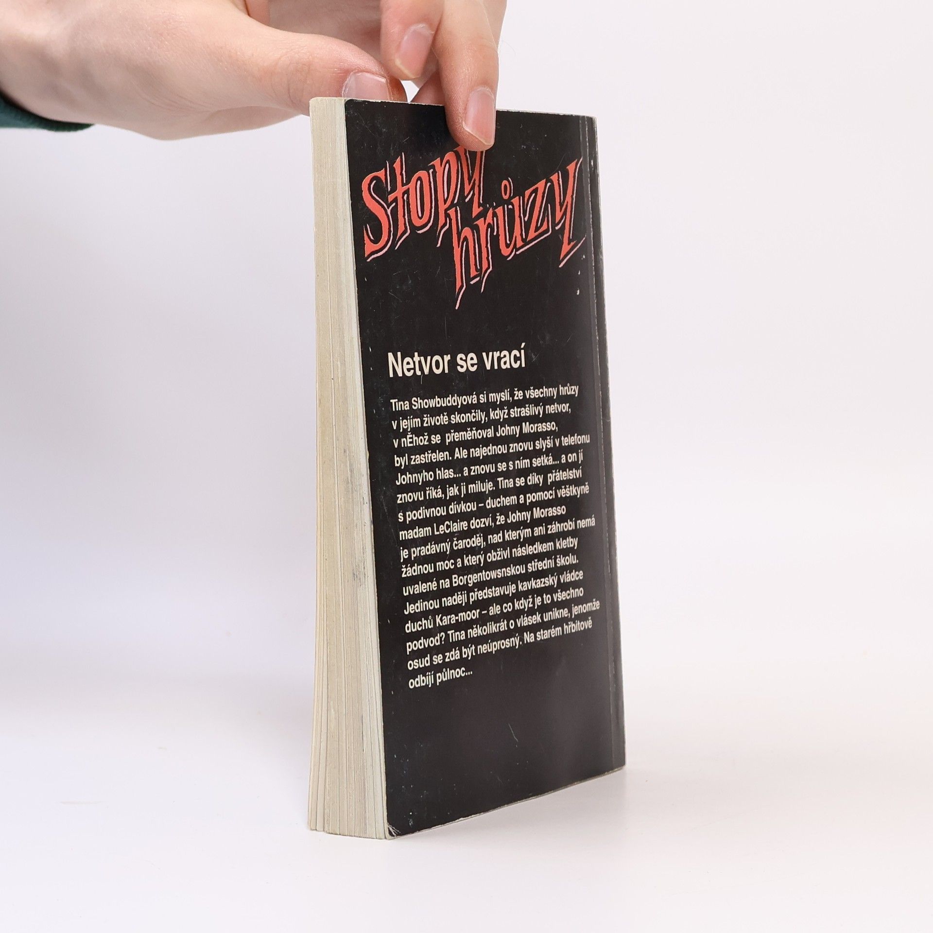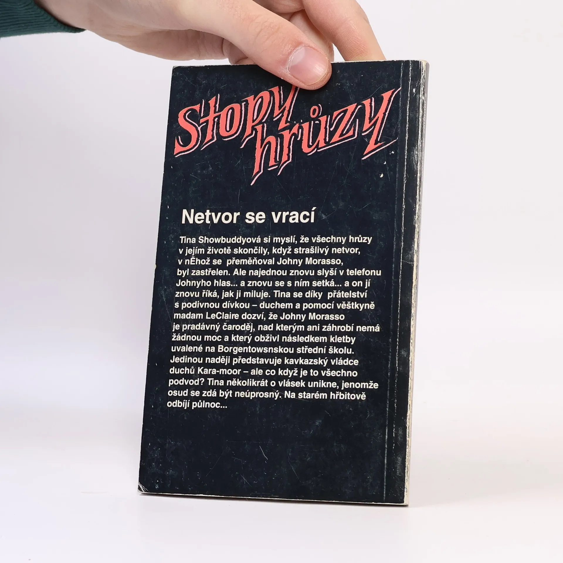 Tina Showbuddyová si myslí, že všechny hrůzy v jejím životě skončily, když strašlivý netvor, v něhož se přeměňoval Johny Morasso, byl zastřelen. Ale najednou znovu slyší v telefonu Johnyho hlas… a znovu se s ním setká… a on jí znovu říká, jak jí miluje. Tina se díky přátelství s podivnou dívkou – duchem a pomocí věštkyně madame LeClaire dozví, že Johny Morasso je pradávný čaroděj, nad kterým ani záhrobí nemá žádnou moc a který obživl následkem kletby uvalené na Borgentownskou střední školu. Jedinou naději představuje kavkazský vládce duchů Kara-moor – ale co když je to všechno podvod? Tina několikrát o vlásek unikne, jenomže osud se zdá být neúprosný. Na starém hřbitově odbíjí půlnoc…