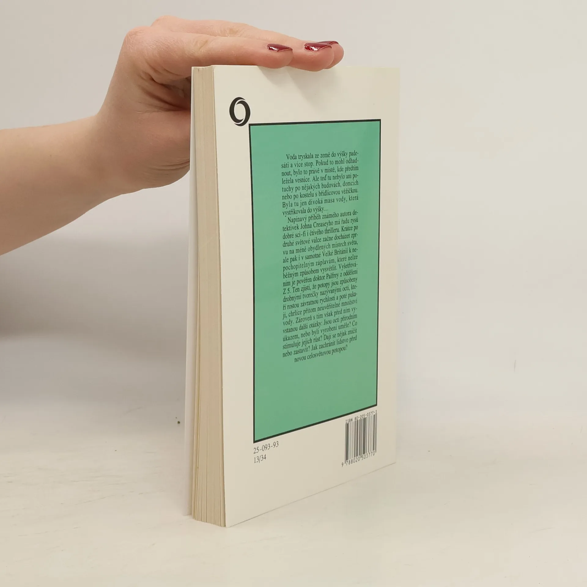 Voda tryskala ze země do výšky padesáti a více stop. Pokud to mohl odhadnout, bylo to právě v místě, kde předtím ležela vesnice. Ale teď tu nebylo ani potuchy po nějakých budovách, domcích nebo po kostelu s břidlicovou věžičkou. Byla tu jen divoká masa vody, která vystřikovala do výšky. Napínavý příběh známého autora detektivek Johna Creaseyho má řadu rysů dobré sci-fi i čtivého thrilleru. Krátce po druhé světové válce začne docházet zprvu na méně obydlených místech světa, ale pak i v samotné Velké Británii k nepochopitelným záplavám, které nelze běžným způsobem vysvětlit. Vyšetřováním je pověřen doktor Palfrey z oddělení Z 5. Ten zjistí, že potopy jsou způsobeny drobnými tvorečky nazývanými octi, kteří rostou závratnou rychlostí a poté pukají, chrlíce přitom neuvěřitelné množství vody. Zároveň s tím však před ním vyvstanou další otázky: Jsou octi přírodním úkazem, nebo byli vyrobeni uměle? Co stimuluje jejich růst? Dají se nějak zničit nebo zastavit? Jak zachránit lidstvo před novou celosvětovou potopou?