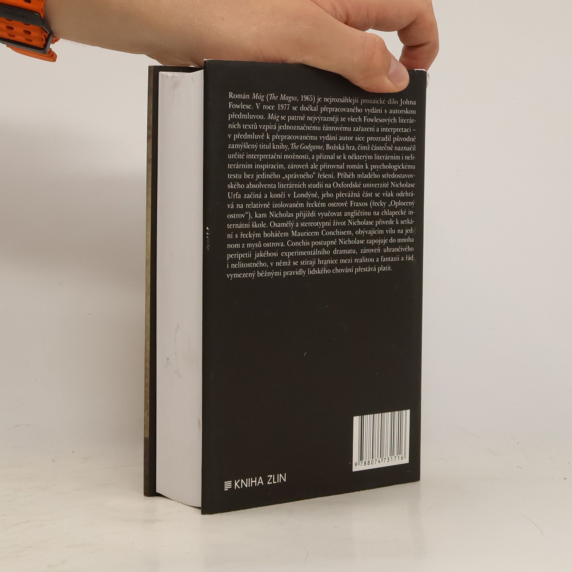 Román Mág (The Magus, 1965) je nejrozsáhlejší prozaické dílo Johna Fowlese. V roce 1977 se román dočkal přepracovaného vydání s autorskou předmluvou. Mág se patrně nejvýrazněji ze všech Fowlesových literárních textů vzpírá jednoznačnému žánrovému zařazení a interpretaci – v předmluvě k přepracovanému vydání autor sice prozradil původně zamýšlený titul knihy, The Godgame, Božská hra, čímž částečně naznačil určité interpretační možnosti, přiznal se k některým literárním i neliterárním inspiracím, zároveň ale přirovnal román k psychologickému testu bez jediného „správného“ řešení. Příběh mladého středostavovského absolventa literárních studií na Oxfordské univerzitě Nicholase Urfa začíná a končí v Londýně, jeho převážná část se však odehrává na relativně izolovaném řeckém ostrově Fraxos (řecky „Oplocený ostrov“), kam Nicholas přijíždí vyučovat angličtinu na chlapecké internátní škole. Osamělý a stereotypní život Nicholase přivede k setkání s řeckým boháčem Mauricem Conchisem, obývajícím vilu na jednom z mysů ostrova. Conchis postupně Nicholase zapojuje do mnoha peripetií jakéhosi experimentálního dramatu, zároveň uhrančivého i nelítostného, v němž se stírají hranice mezi realitou a fantazií a řád vymezený běžnými pravidly lidského chování přestává platit.