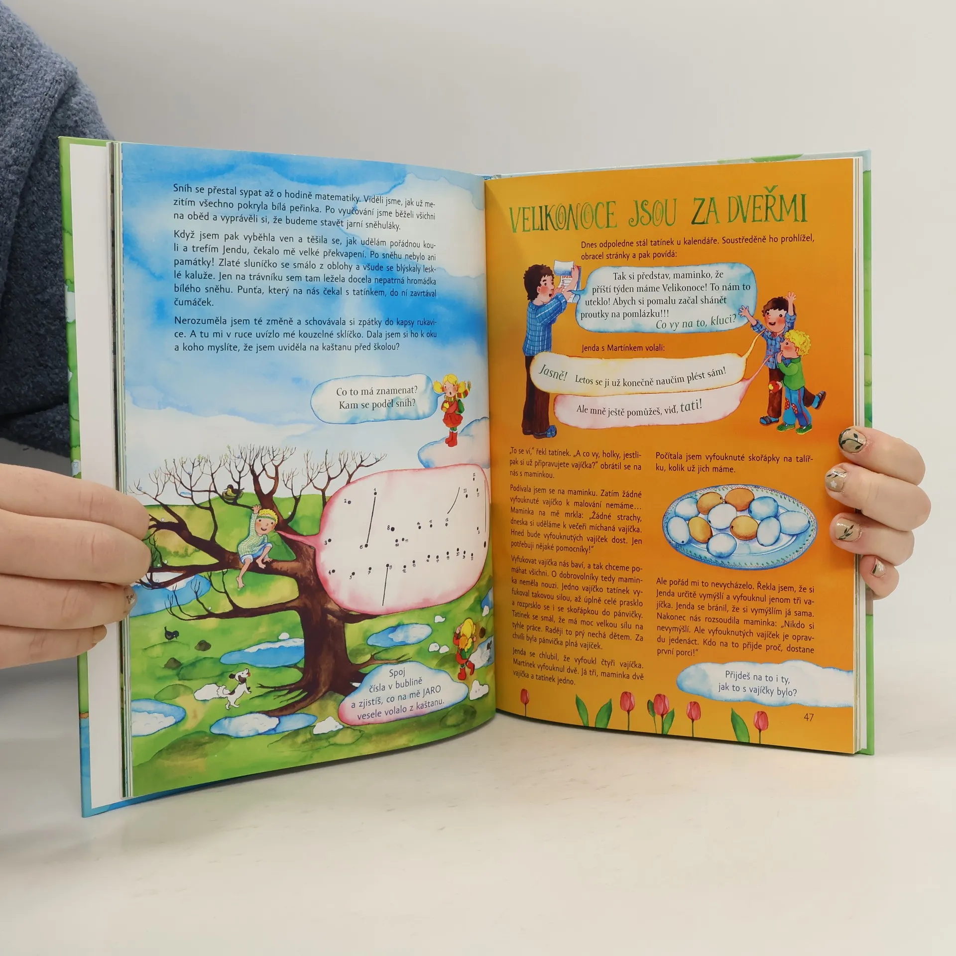 A je tu zase Lucka s brášky Jednou a Martínkem, které už známe z krásné knížky Čekání na Vánoce. Tři sourozence tentokrát potkáme v jarním čase, který v sobě také skrývá spoustu hezkých zvyků a aktivit, jako je otvírání studánek,pletení věnců, pálení čarodějnic a samozřejmě velikonoční svátky. Děti i rodiče najdou na každé stránce něco nového a zajímavého a hlavně celou řadu nápadů na to, jak si jarní čas náležitě užít.