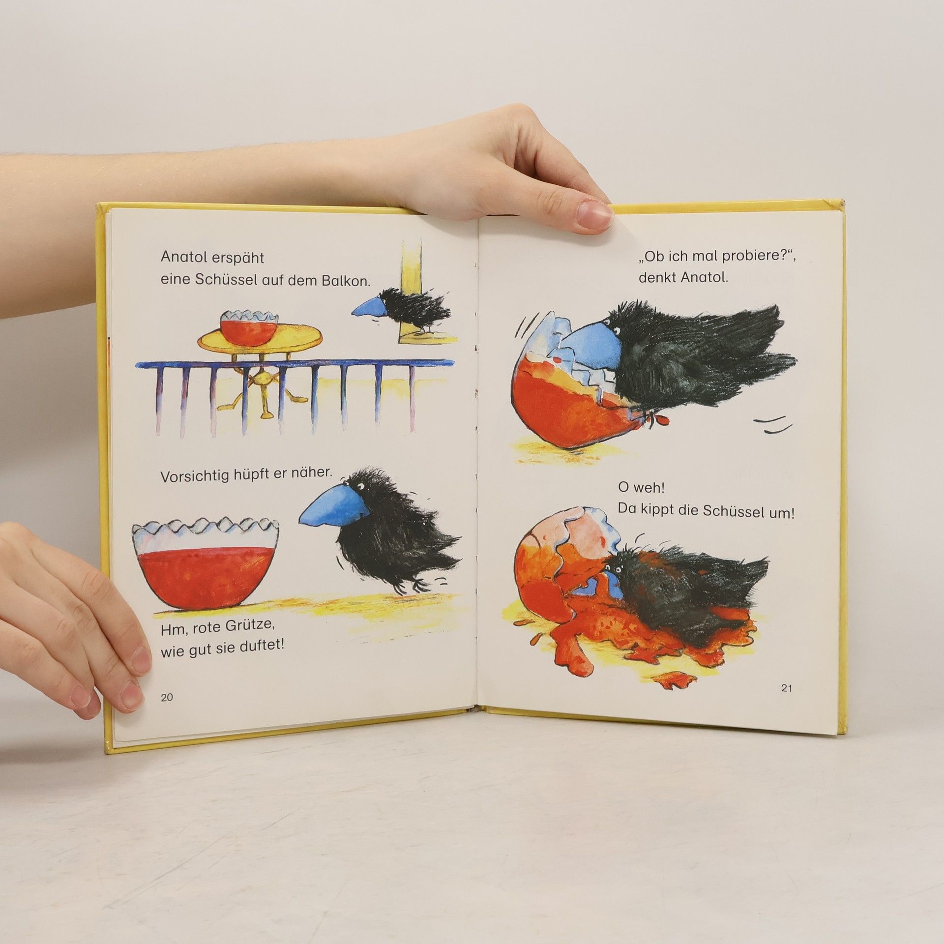 Der kleine Rabe Anatol mit dem blauen Schnabel ist sehr gefrässig. Sein Rabenhunger und seine besondere Gier auf Kekse treiben ihn in waghalsige Abenteuer.