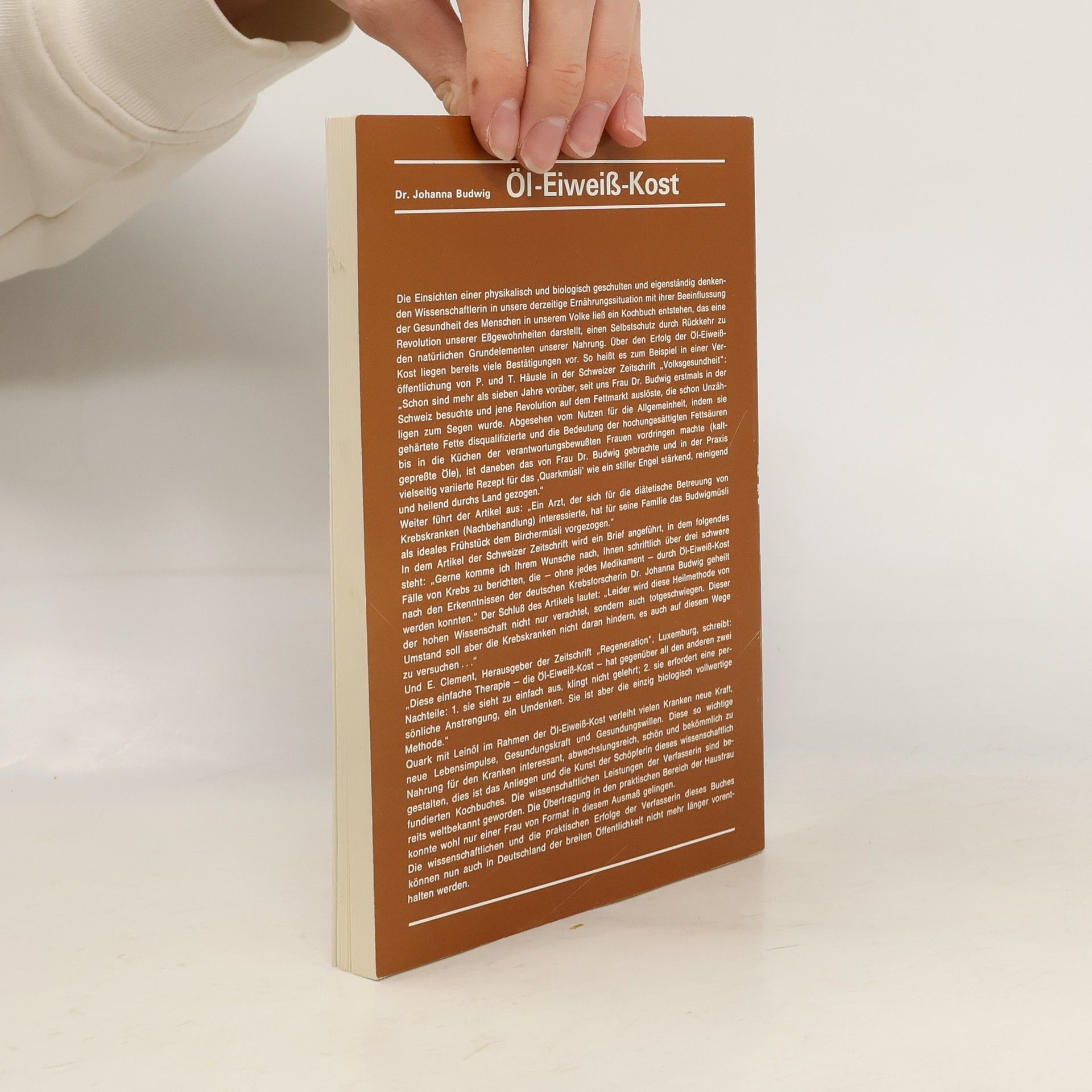 Dieses außergewöhnliche Buch, welches inzwischen mehr als 350.000 Mal verkauft wurde, steht nicht nur bei körperlichen und geistigen Hochleistungssportlern im Regal, sondern vor allem bei Menschen, die durch diese Kost geheilt wurden. Seit über 40 Jahren behandelt die Wissenschaftlerin erfolgreich schwer kranke Menschen. In diesem (Koch) Buch erklärt sie ausführlich, wie man durch natürliche Kost gesund wird und bleibt.§Lassen Sie sich von dieser brillanten Forscherin zum Nachdenken anregen und lernen Sie eine Ernährung kennen, welche Ihnen die Energie liefert, die Sie benötigen. Die Öl-Eiweiß Kost ist keine Theorie wie viele andere Diäten, sondern eine Ernährungstherapie, die auf den wissenschaftlichen Grundlagen der Quantenphysik aufgebaut ist und der viele Menschen ihr Leben zu verdanken haben.