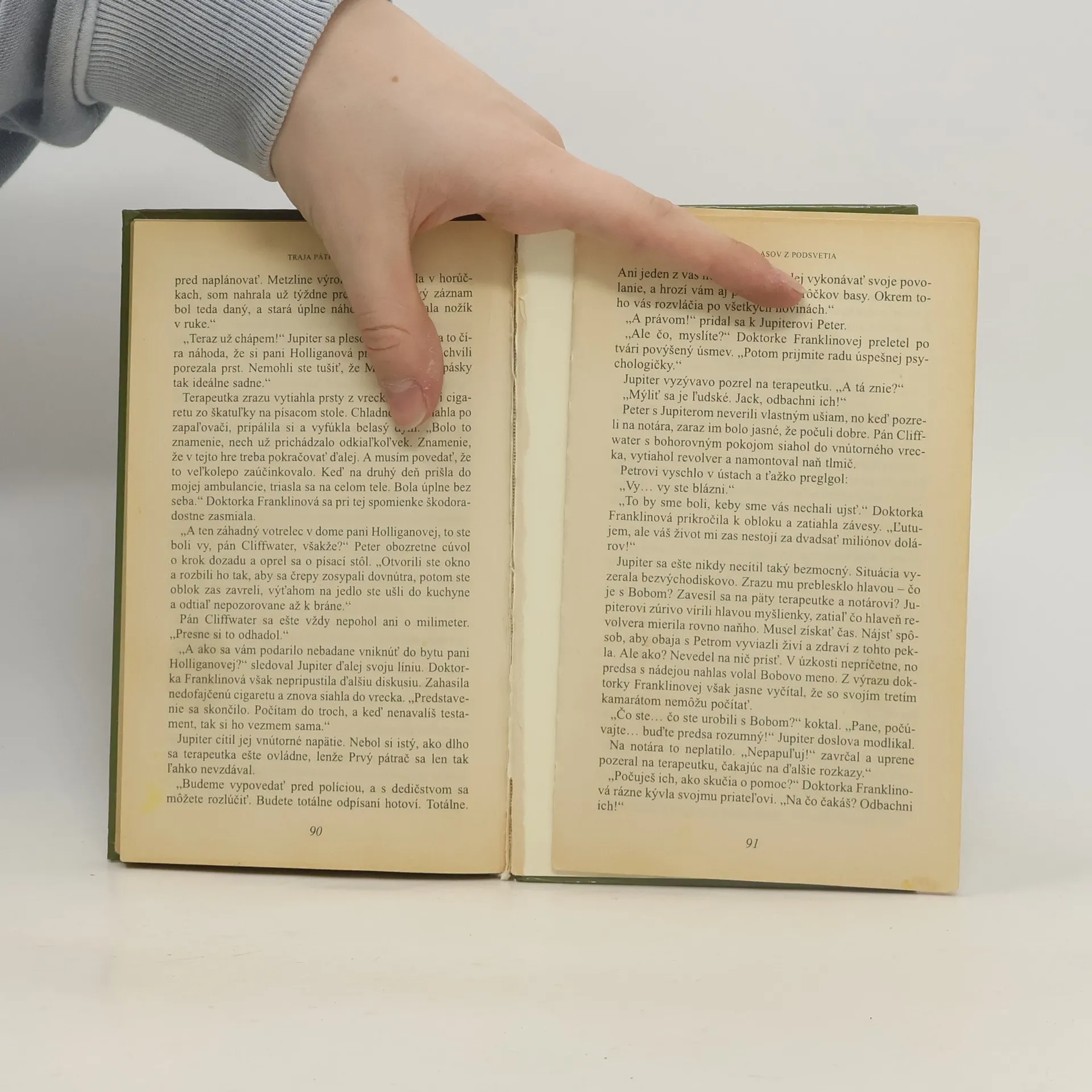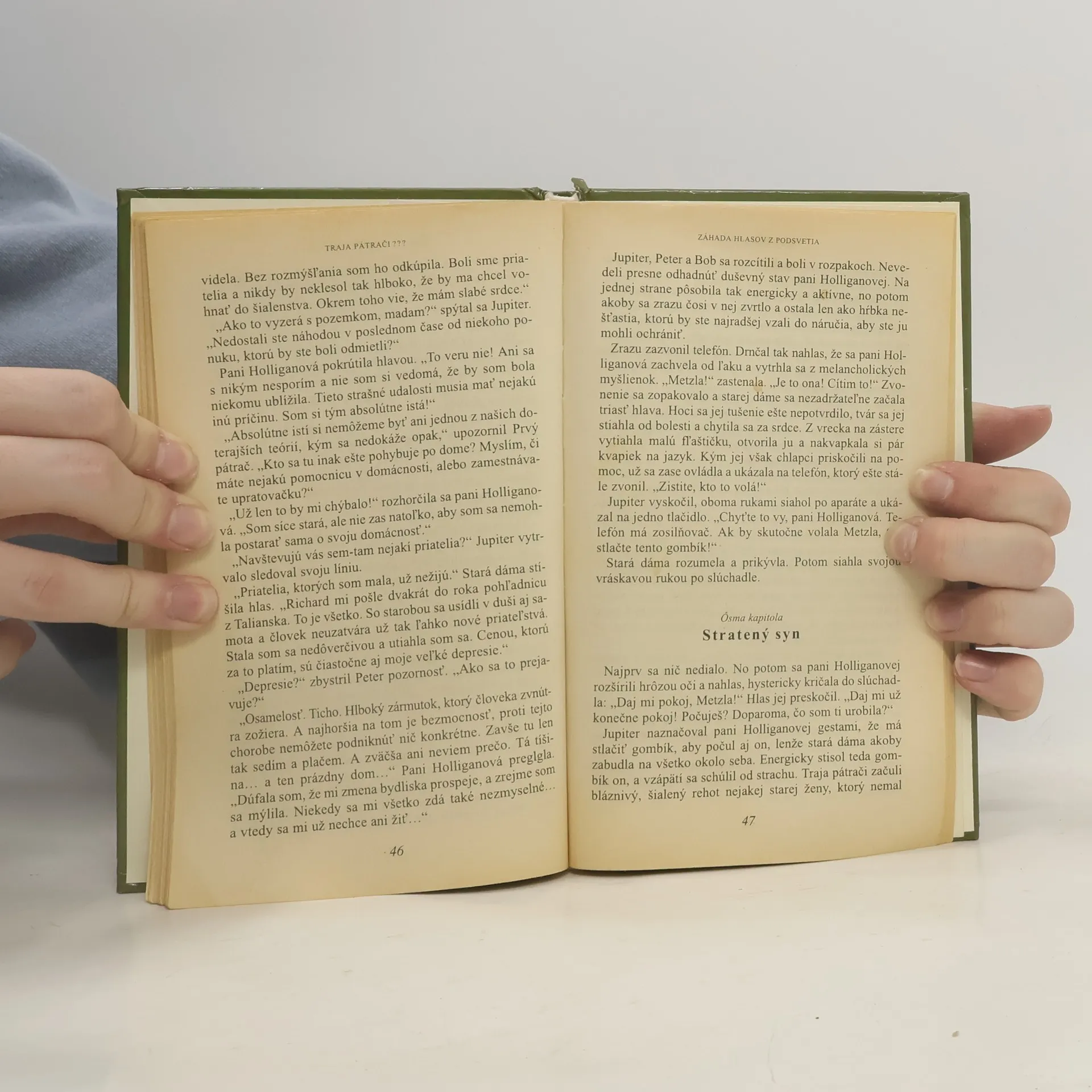 Tentoraz sa Traja pátrači zaoberajú prípadom milionárky Holliganovej, ktorá chce po smrti odkázať svoj majetok na výskum rakoviny. Jupiter sa s ňou stretne v čakárni praktického lekára a stará pani je na pokraji nervového zrútenia. Tvrdí, že jej nenávistná sestra Metzla ju prenasleduje strašnými hrozbami. Háčik je v tom, že Metzla už tri mesiace odpočíva na cintoríne ! Čo za mysteriózne hlasy teda ohrozujú pani Holliganovú ? Keď si s tým nevie poradiť ani psychoterapeutka, je načase, aby svoj ostrovtip predviedli Traja pátrači.