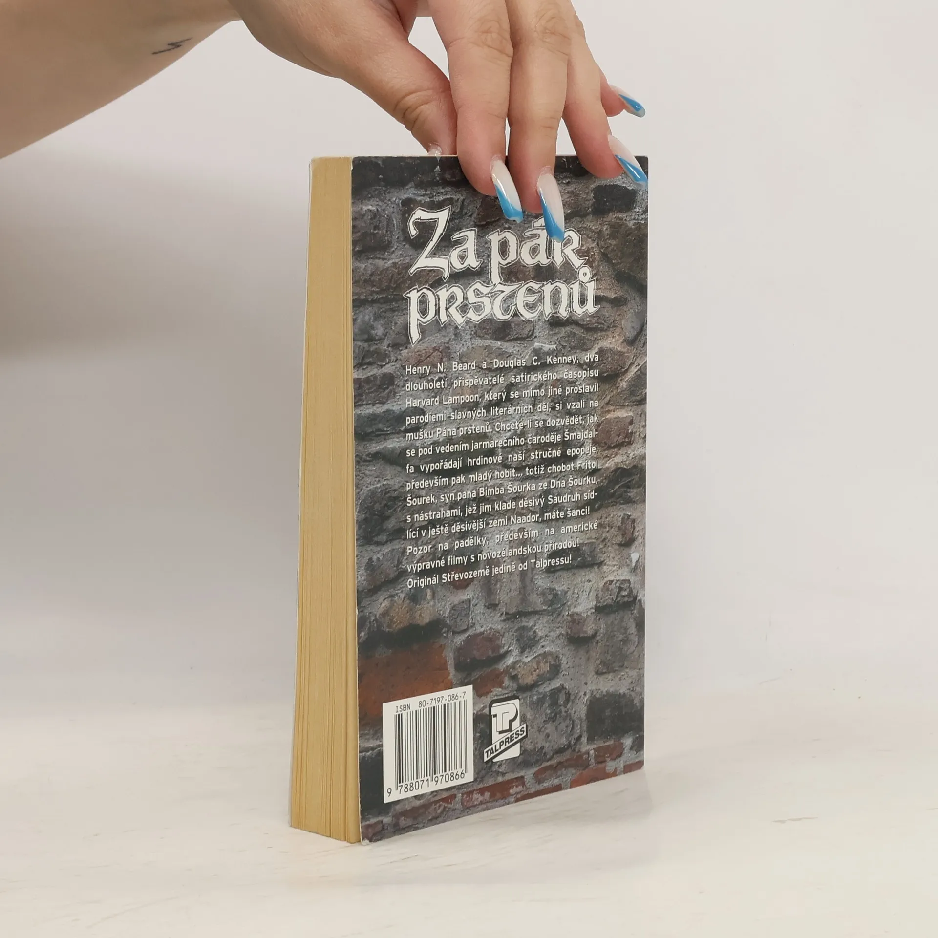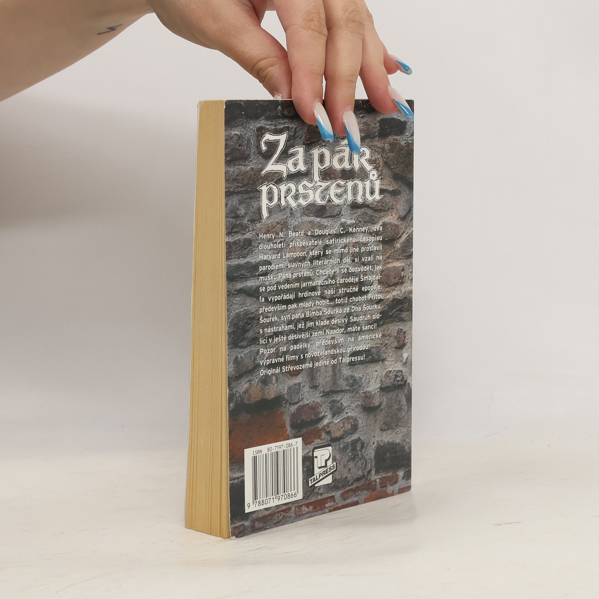 Henry N. Beard a Douglas C. Kenney, dva dlouholetí přispěvatelé satirického časopisu Harvard Lampoon, který se mimo jiné proslavil parodiemi slavných literárních děl, si vzali na mušku Pána prstenů. Chcete-li se dozvědět, jak se pod vedením jarmarečního čaroděje Šmajdalfa vypořádají hrdinové naší stručné epopeje, především pak mladý hobit... totiž chobot Fritol Šourek, syn pana Bimba Šourka ze Dna Šourku, s nástrahami, jež jim klade děsivý Saudruh sídlící v ještě děsivější zemi Naador, máte šanci! Pozor na padělky, především na americké výpravné filmy s novozélandskou přírodou!... celý text