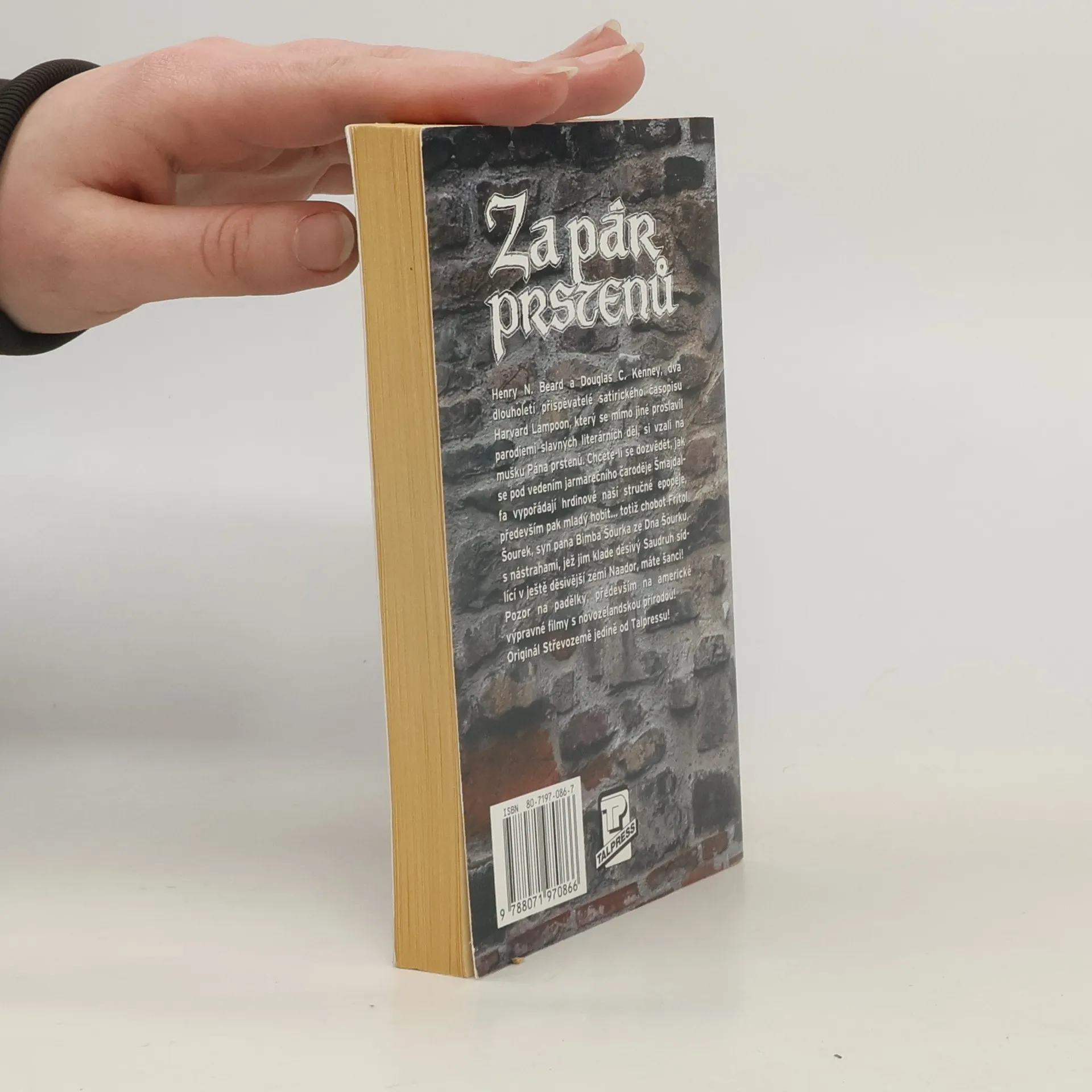 Henry N. Beard a Douglas C. Kenney, dva dlouholetí přispěvatelé satirického časopisu Harvard Lampoon, který se mimo jiné proslavil parodiemi slavných literárních děl, si vzali na mušku Pána prstenů. Chcete-li se dozvědět, jak se pod vedením jarmarečního čaroděje Šmajdalfa vypořádají hrdinové naší stručné epopeje, především pak mladý hobit... totiž chobot Fritol Šourek, syn pana Bimba Šourka ze Dna Šourku, s nástrahami, jež jim klade děsivý Saudruh sídlící v ještě děsivější zemi Naador, máte šanci! Pozor na padělky, především na americké výpravné filmy s novozélandskou přírodou!... celý text