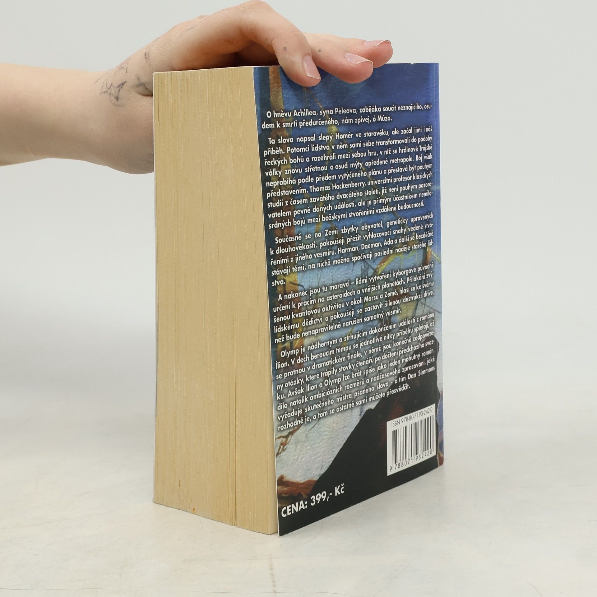 O hněvu Achillea, syna Péleova, zabijáka soucit neznajícího, osudem k smrti předurčeného, nám zpívej, ó Múzo. Ta slova napsal slepý Homér ve starověku, ale začal jimi i náš příběh. Potomci lidstva v něm sami sebe transformovali do podoby řeckých bohů a rozehráli mezi sebou hru, v níž se hrdinové trojské války znovu střetnou o osud mýty opředené metropole. Boj však neprobíhá podle předem vytýčeného plánu a přestává být pouhým představením. Thomas Hockenberry, univerzitní profesor klasických studií z časem zavátého dvacátého století, již není pouhým pozorovatelem pevně daných událostí, ale je přímým účastníkem nemilosrdných bojů mezi božskými stvořeními vzdálené budoucnosti. Současně se na Zemi zbytky obyvatel, geneticky upravených k dlouhověkosti, pokoušejí přežít vyhlazovací snahy vedené stvořeními z jiného vesmíru. Harman, Daeman, Ada a další se bezděčně stávají těmi, na nichž možná spočívají poslední naděje starého lidstva. A nakonec jsou tu moravci – lidmi vytvoření kyborgové původně určení k pracím na asteroidech a vnějších planetách. Přilákáni zvýšenou kvantovou aktivitou v okolí Marsu a Země, hlásí se ke svému lidskému dědictví a pokoušejí se zastavit šílenou destrukci dříve, než bude nenapravitelně narušen samotný vesmír.