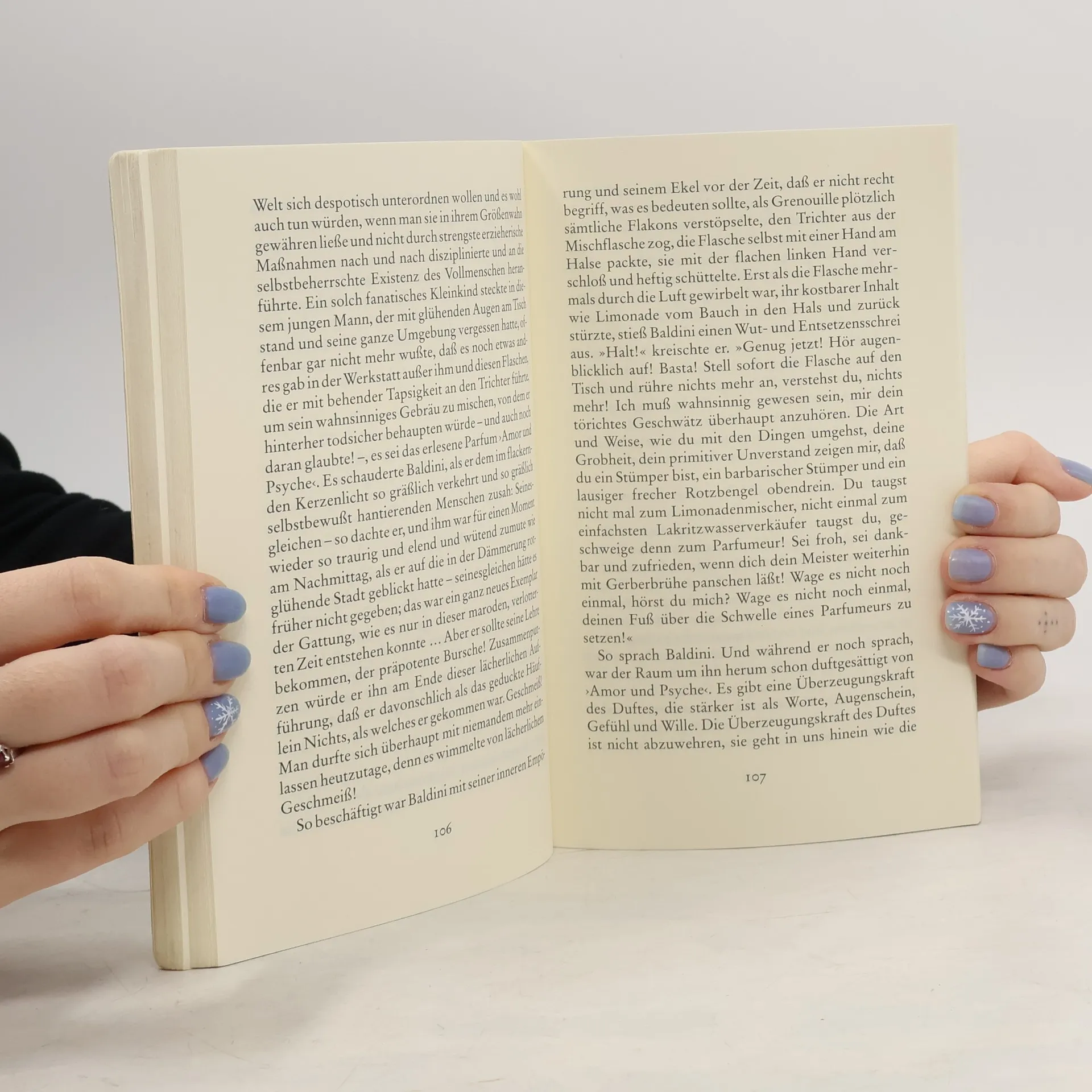 Von Jean-Baptiste Grenouille, dem finsteren Helden, sei nur verraten, daß er 1738 in Paris, in einer stinkigen Fischbude, geboren wird. Die Ammen, denen das Kerlchen an die Brust gelegt wird, halten es nur ein paar Tage mit ihm aus: Er sei zu gierig, außerdem vom Teufel besessen, wofür es untrügliche Indizien gebe: den fehlenden Duft, den unverwechselbaren Geruch, den Säuglinge auszuströmen pflegen.