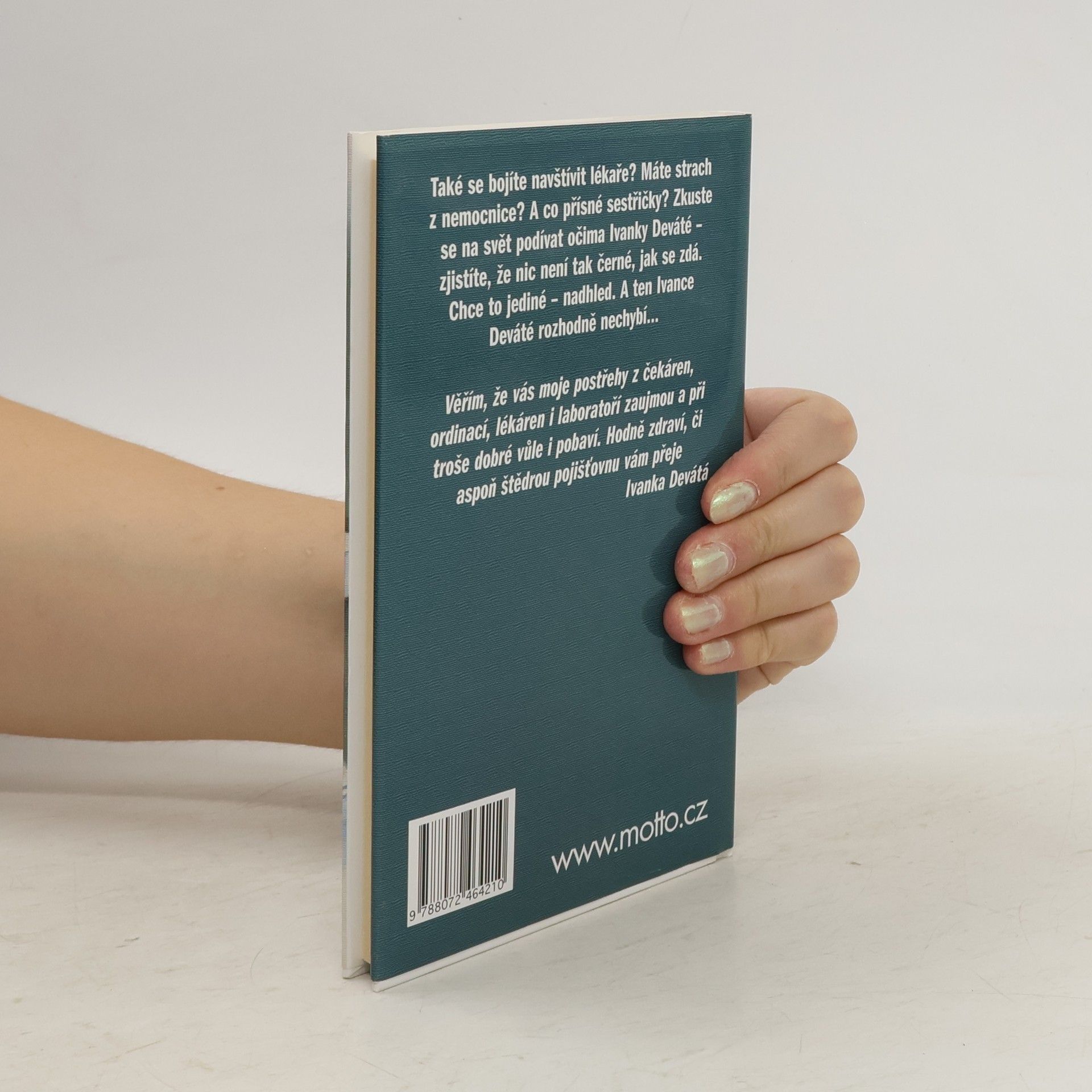 Humorné příběhy a postřehy z nemocničního prostředí Také se bojíte navštívit lékaře? Máte strach z nemocnice? A co přísné sestřičky? Zkuste se na svět podívat očima Ivanky Deváté - zjistíte, že nic není tak černé, jak se na první pohled zdá.