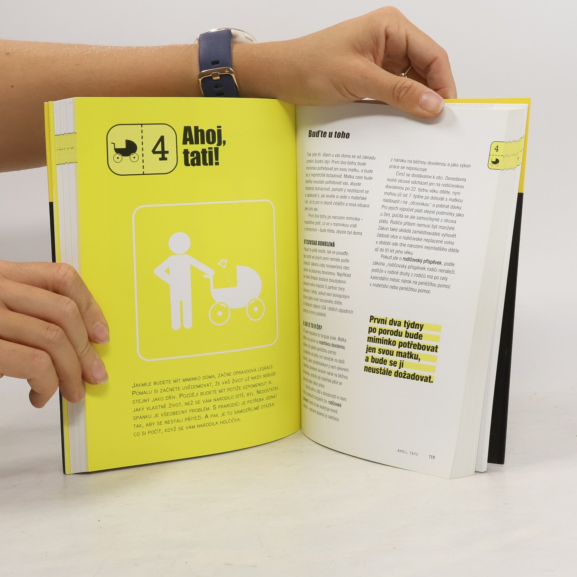 Praktická příručka pro nové tatínky (i ty nevlastní) Praktická příručka je určena aktivním otcům, kteří mají zájem pomáhat své ženě a plně se podílet na péči o své potomky. Knížka provází tatínky od rozhodnutí mít dítě, přes jeho početí, ženino těhotenství a porod až k péči o novorozeně a batole. Knížka přisuzuje otci náročnou a aktivní roli v péči o potomka i v péči o celou rodinu a domácnost. Velmi přehledně shrnuje praktické rady, jak nejlépe postupovat a čeho se naopak vyvarovat. Přehledný výklad doplňuje několik zábavných testů. Tři čtvrtiny knihy jsou věnovány péči o novorozeně a malé dítě. Poslední kapitoly trochu násilně zasvěcují otce do tajů puberty, manželské krize a rozvodu. V závěru doporučená literatura a rejstřík pojmů.